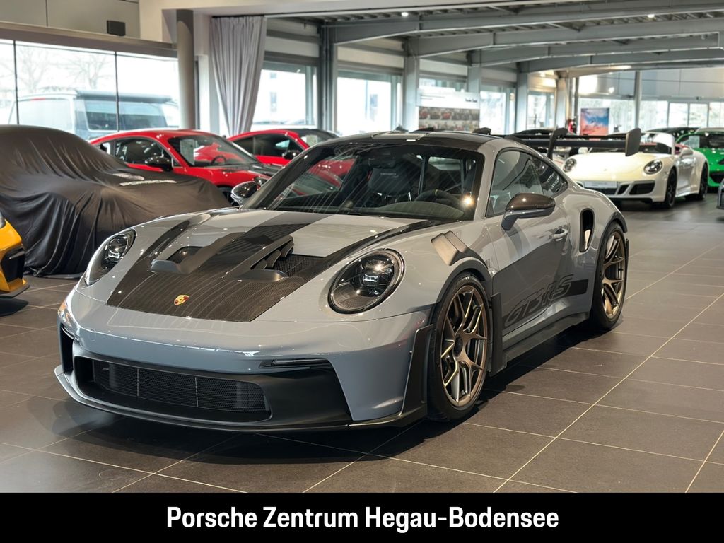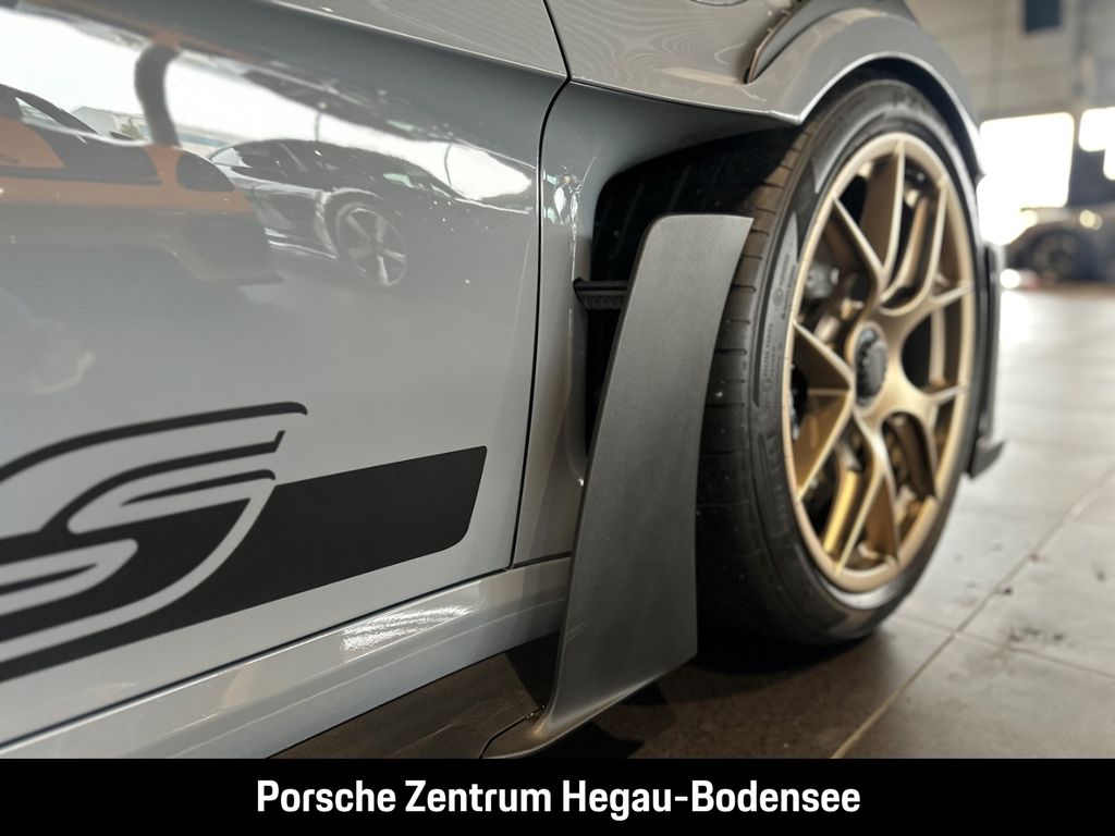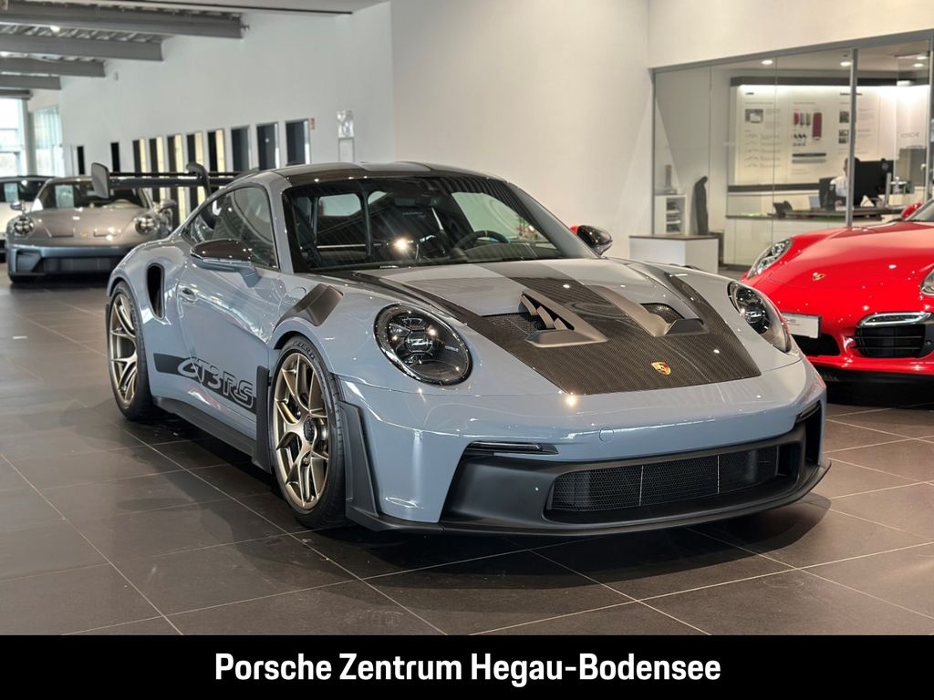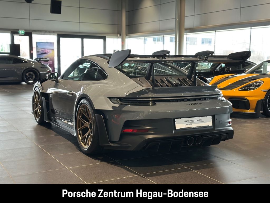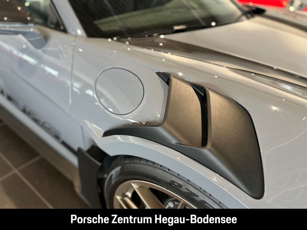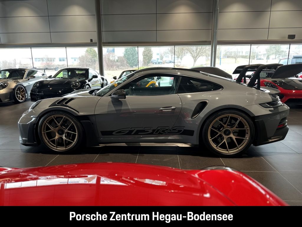 - Weiteres: (P70) Weissach-Paket ohne Überrollkäfig, (6A9) Clubsportpaket, (P70) Weissach-Paket, (UD1) LED-Türprojektoren „PORSCHE“ Schriftzug, (2UH) Liftsystem Vorderachse, (0I2) Kraftstofftank 90 l, (1LX) Porsche Ceramic Composite Brake (PCCB) mit Bremssätteln lackiert in Schwarz (hochglanz), (56R) 20-/21-Zoll GT3 RS Magnesium Leichtbau-Schmiederäder, (QQ2) Licht-Design-Paket, (2Y9) Überrollkäfig aus kohlefaserverstärktem Kunststoff, (7M8) Türeinstiegsblenden Carbon matt, beleuchtet, (9VL) BOSE® Surround Sound-System, (8JU) LED-Matrix Hauptscheinwerfer abgedunkelt inkl. Porsche Dynamic Light System Plus (PDLS Plus), (8VH) Exclusive Design Heckleuchten, (P14) Automatisch abblendende Innen-/Außenspiegel mit integriertem Regensensor, (KA2) ParkAssistent hinten inkl. Rückfahrkamera, (QR9) Verkehrszeichenerkennung, (8U7) Vorrüstung Porsche Dashcam