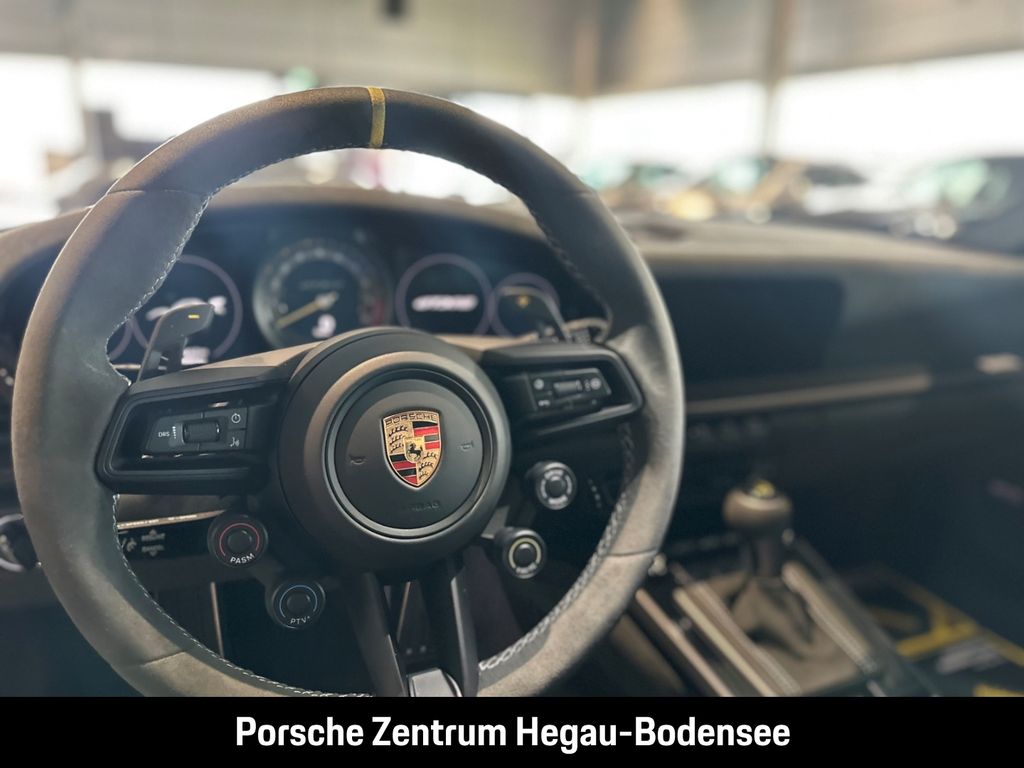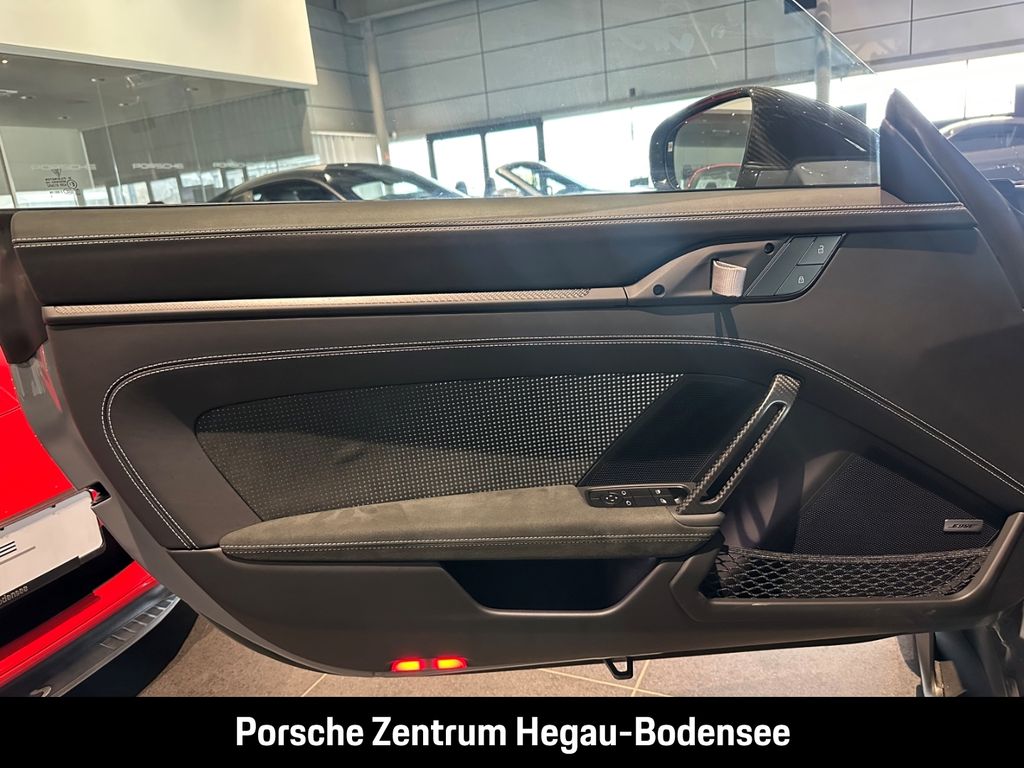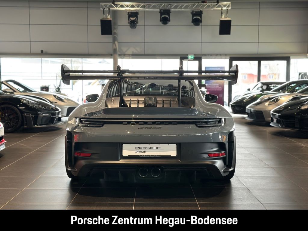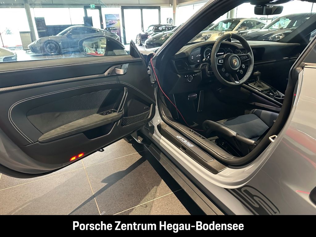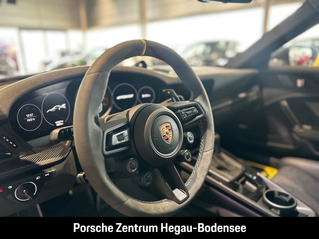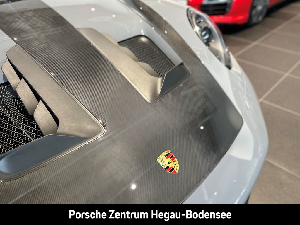- Weiteres: (P70) Weissach-Paket ohne Überrollkäfig, (6A9) Clubsportpaket, (P70) Weissach-Paket, (UD1) LED-Türprojektoren „PORSCHE“ Schriftzug, (2UH) Liftsystem Vorderachse, (0I2) Kraftstofftank 90 l, (1LX) Porsche Ceramic Composite Brake (PCCB) mit Bremssätteln lackiert in Schwarz (hochglanz), (56R) 20-/21-Zoll GT3 RS Magnesium Leichtbau-Schmiederäder, (QQ2) Licht-Design-Paket, (2Y9) Überrollkäfig aus kohlefaserverstärktem Kunststoff, (7M8) Türeinstiegsblenden Carbon matt, beleuchtet, (9VL) BOSE® Surround Sound-System, (8JU) LED-Matrix Hauptscheinwerfer abgedunkelt inkl. Porsche Dynamic Light System Plus (PDLS Plus), (8VH) Exclusive Design Heckleuchten, (P14) Automatisch abblendende Innen-/Außenspiegel mit integriertem Regensensor, (KA2) ParkAssistent hinten inkl. Rückfahrkamera, (QR9) Verkehrszeichenerkennung, (8U7) Vorrüstung Porsche Dashcam