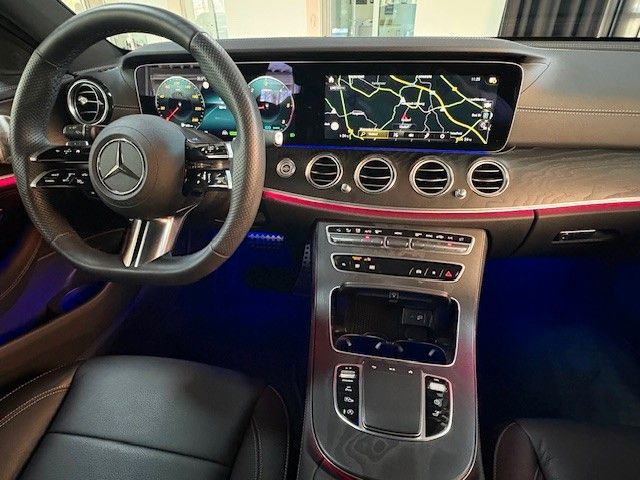 Erleben Sie deutsche Ingenieurskunst in ihrer elegantesten Form mit diesem Mercedes-Benz E 220 Kombi. Dieses gepflegte Fahrzeug aus 2024 mit nur einem Vorbesitzer vereint Komfort, Sicherheit und modernste Technologie. Der 200 PS starke Dieselmotor mit Allradantrieb bietet beeindruckende Leistung bei gleichzeitig umweltbewusster Euro-6d-Einstufung. Die schwarze Lederausstattung harmoniert perfekt mit der metallischen grauen Außenlackierung und unterstreicht den Premium-Charakter dieses Fahrzeugs.Die umfangreiche Ausstattung umfasst ein digitales Cockpit mit Touchscreen, Navigationssystem und kabelloses Smartphone-Laden. Der Fahrkomfort wird durch die elektrisch verstellbaren Sitze mit Memory-Funktion, Lendenwirbelstütze und Sitzheizung erhöht. Das Panorama-Glasdach und die Ambientbeleuchtung schaffen eine angenehme Atmosphäre. Für maximale Sicherheit sorgen zahlreiche Assistenzsysteme wie 360°-Kamera, adaptiver Tempomat und Spurhalteassistent.