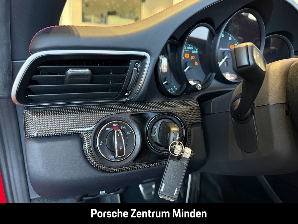 - Weiteres: (474) Liftsystem Vorderachse, (QR5) Chrono Paket, (082) 90-Liter-Kraftstofftank, (886) Lenkradkranz mit 12-Uhr-Markierung in Rot, (P07) Adaptive Sportsitze Plus (18 Wege, elektrisch) mit Memory-Paket, (573) 2-Zonen-Klimaautomatik, (342) Sitzheizung, (583) Raucherpaket, (810) Fußmatten, (581) Ablagenetz im Beifahrerfußraum, (XPT) Deckel Ablagefach mit Porsche Wappen, (XWK) Sportsitz Plus-Rückenlehnen Leder, (749) Ziernähte Lederausstattung in Rot, (9VL) BOSE® Surround Sound-System, (QV3) Digitalradio, (I8L) Porsche Communication Management (PCM) inkl. Online-Navigation, Sprachbedienung und Handyvorbereitung, (XEY) LED-Hauptscheinwerfer schwarz inkl. Porsche Dynamic Light System (PDLS), (630) Licht-Design-Paket, (7X9) Rückfahrkamera