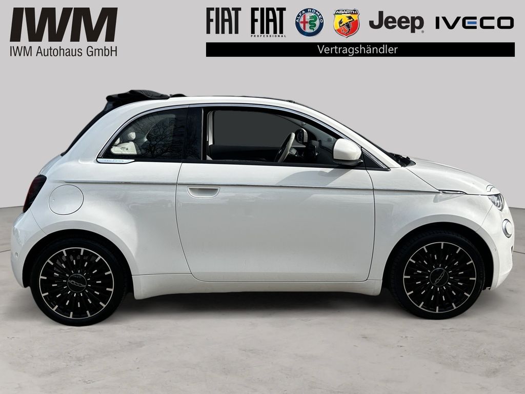 Airbag Fahrer-/Beifahrerseite, Ambiente-Beleuchtung, Antriebs-Schlupfregelung (ASR), Armaturenbrett farbig (Wagenfarbe), Audiosystem: Premium - HiFi-Anlage von JBL, Autom. Begleitfunktion der Beleuchtung (Follow me home), Außenspiegel elektr. verstell- und heizbar, beide, Beifahrerairbag abschaltbar, Einparkhilfe hinten, Einstiegsleisten (verchromt), Elektromotor 87 kW (cont. 43 kW), Fahrassistenz-System: Aufmerksamkeits-Assistent, Fahrassistenz-System: Autonomer Notbrems-Assistent (AEB), Fahrassistenz-System: Autonomes Fahren Level 2, Fahrassistenz-System: Bremsassistent, Fahrassistenz-System: Fernlichtassistent, Fahrassistenz-System: Spurhalteassistent, Fahrassistenz-System: Totwinkel-Assistent, Fahrassistenz-System: Verkehrszeichenerkennung, Fahrmodusschalter, Fahrzeugschlüssel in Stein-Optik, Fensterheber elektr. vorn mit Komfortschaltung, Fensterzierleisten verchromt, Fußmatten La Prima, Handschuhfach beleuchtet, Heckleuchten LED, Heckscheibe heizbar, HV-Batterie 42 kWh (Lithium-Ionen), Induktionsladeschale für Smartphone (Wireless Charging), Infotainment-System: UConnect 5 mit Navigationssystem, DAB+ und Bluetooth-Freisprecheinrichtung (Touchscreen 10,25"), Instrumentenanzeige Farbdisplay, 7 Zoll, Karosserie: 2-türig, Klimaautomatik, Kopf-Airbag-System vorn, Kopfstützen hinten, Lenkrad (ecoLeder, 2-farbig), Lenkrad mit Multifunktion, Lenksäule (Lenkrad) höhenverstellbar, LM-Felgen, Mittelarmlehne vorn, Mobile Online Dienste UConnect Live, Nebelschlussleuchte, Notrufsystem (eCall), One Pedal Drive (elektronisches Gaspedal), Parkbremse elektrisch, Radioempfang digital (DAB+), Rückfahrkamera mit 360° Surround View, Rückfahrkamera Park View, Scheibenwischer beheizbar, Scheinwerfer LED, Schnellladefunktion 85 kW (DC), Seitenairbag vorn, Seitenschutzleisten mit Chrom-Applikationen, Sitzbezug / Polsterung: Kunstleder, Sitzheizung vorn, Sitzverstellung vorn links (4-fach), Smartphone Schnittstelle (Apple CarPlay & Android Auto), Sonnenblenden mit Spiegel (beleuchtet), Steckdose (12V-Anschluß) vorn, Tagfahrlicht LED, USB-Anschlüsse (Typ C und Typ A), USB-Schnittstelle, Verdeckbezug Stoff schwarz, Wärmeschutzverglasung, Ambiente-Beleuchtung, Sitze: Top-Sportsitze vorn, Sitzheizung vorn
