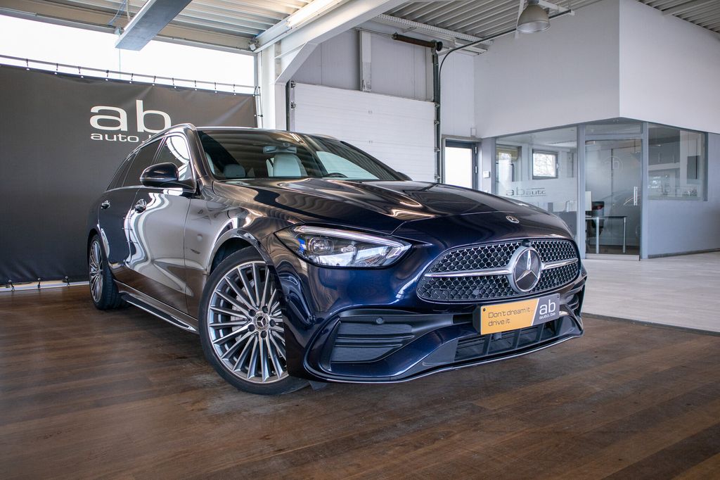 Stunning 2022 Mercedes C200 Breakdark blue metallicwhite leather interior
