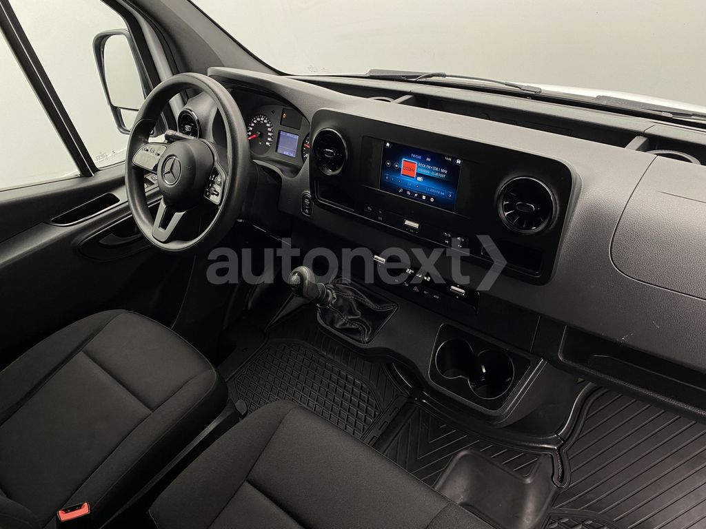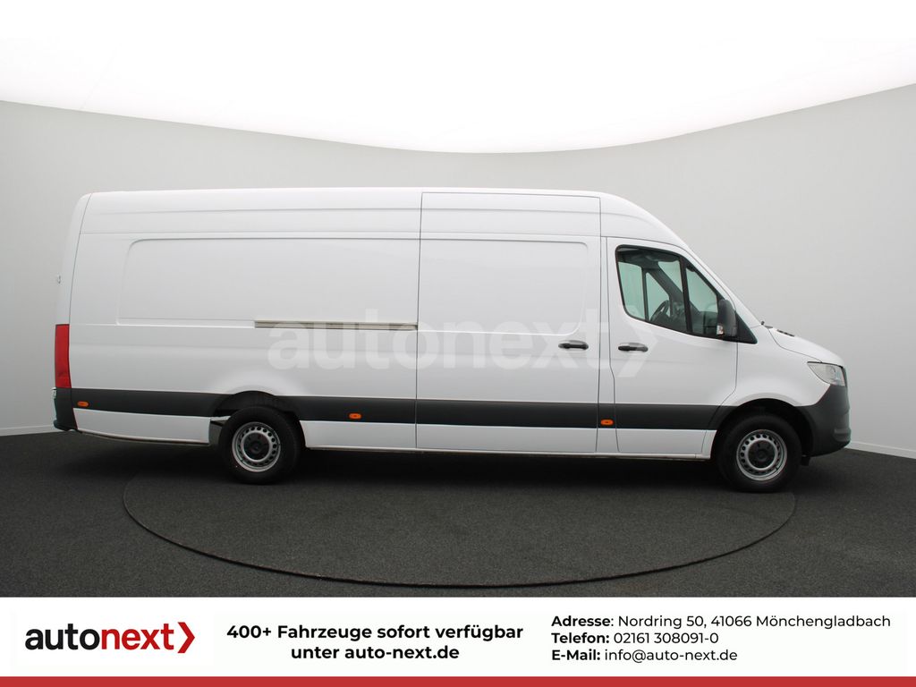 3. Bremsleuchte, Ablagefach oberhalb Frontscheibe, Ablagefach unterhalb Armaturentafel Beifahrerseite, Adaptives Bremslicht, Airbag Fahrerseite, Anti-Blockier-System (ABS), Antriebs-Schlupfregelung (ASR), Antriebsart: Heckantrieb, Anzeige für Waschwasserstand, Außenspiegel elektr. verstell- und heizbar, beide, Außentemperaturanzeige, Bremsassistent, Einschaltautomatik für Fahrlicht, Einstiegsgriff für Schiebetür an Laderaumtrennwand, Elektr. Bremskraftverteilung (EBV), Elektron. Stabilitäts-Programm (ESP), Fahrassistenz-System: Pannenmanagement, Fahrassistenz-System: Seitenwind-Assistent, Fahrwerk: Stabilisierung Stufe I, Fensterheber elektrisch 2-fach, Geräuschmaßnahme außen, Getriebe 6-Gang - TSG (Eco Gear), Hecktür (Öffnungswinkel 270 Grad), Karosserie/Aufbau: Kasten Hochraum Überhang, Keyless-Start, Kindersicherung, Kommunikationsmodul (LTE) für digitale Dienste, Kraftstofftank: Haupttank 71 Ltr., Laderaumtrennwand durchgehend, Lenkrad (Lenksäule mech. verstellbar), Leuchtweitenregelung, LKW-Zulassung, Markierungsleuchten seitlich, Mercedes-Benz Notrufsystem, Motor 2,0 Ltr. - 110 kW CDI KAT, Partikelfilter, Radstand 4325 mm, Schadstoffarm nach Abgasnorm Euro 6d-TEMP, Schiebetür Lade-/Fahrgastraum rechts, Sicherheitsgurt-System mit Warnanlage (Beifahrerseite), Sicherheitsgurt-System mit Warnanlage (Fahrerseite), Sitzbezug / Polsterung: Stoff, Sitze im Fahrerhaus: Fahrersitz mit Armlehne, Sitze im Fahrerhaus: Fahrersitz verstellbar, Start/Stop-Anlage Motor, Tagfahrlicht, Vlies-Batterie 92 Ah, Wartungsintervall-Anzeige Assyst, Wegfahrsperre, Wärmeschutzverglasung, Zul. Gesamtgewicht 3,50 t.