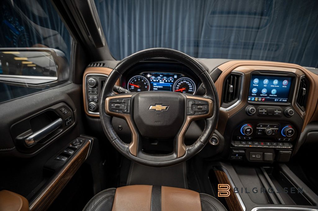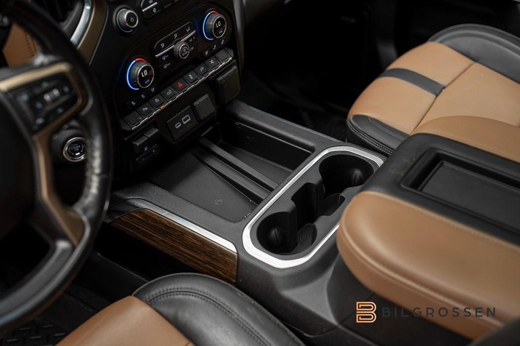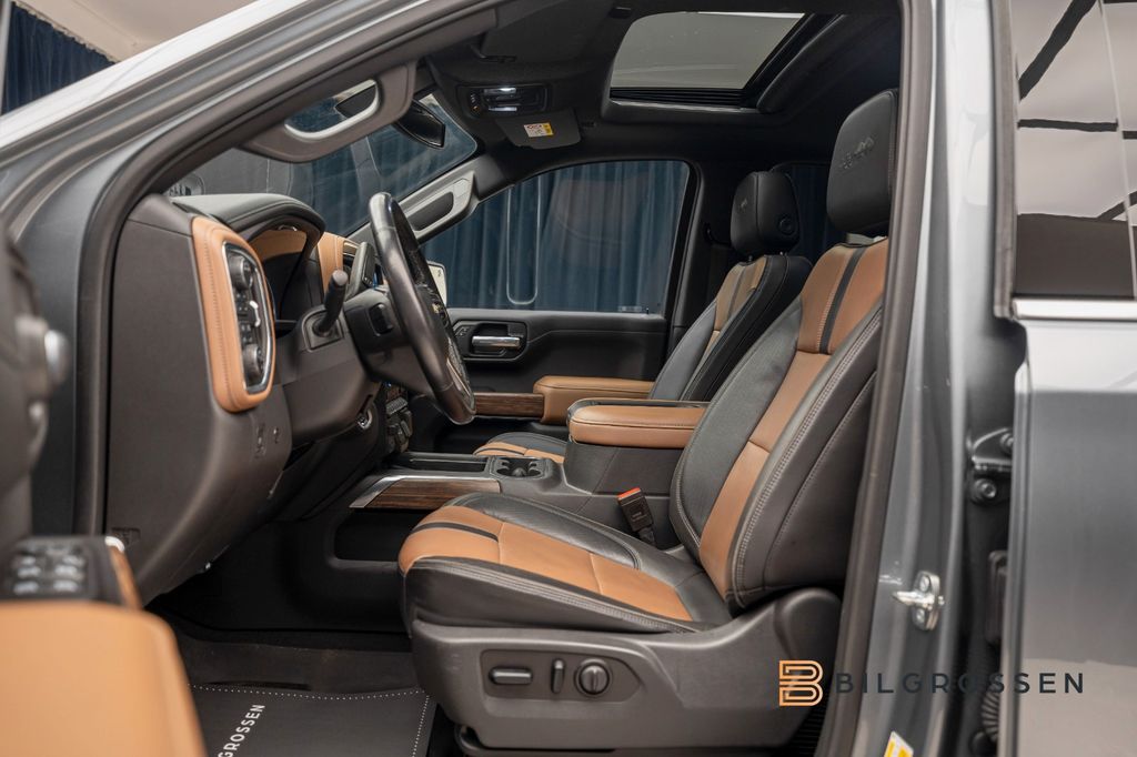 Denna Chevrolet Silverado 6.2 V8 High Country är en fullsize-pickup som kombinerar rå amerikansk V8-prestanda med hög komfort och exklusiv utrustningsnivå. Under huven sitter en imponerande 6,2-liters V8 bensinmotor som levererar hela 426 hk och 624 Nm, kopplad till en Hydra-Matic automatväxellåda och 4WD fyrhjulsdrift, vilket ger både kraftresurser och trygg framkomlighet oavsett underlag.Bilen har en snittförbrukning på cirka 1,0 l/mil. Exteriören i Grå Metallic ger ett robust och samtidigt elegant intryck, medan High Country-paketet adderar exklusiva detaljer och en mer påkostad finish. Invändigt möts du av en rymlig och komfortabel kupé med svart/brun skinnklädsel, där premiumkänsla och amerikansk pickup-karaktär möts. Utrustningen omfattar bland annat det kraftfulla BOSE ljudsystemet för en fyllig ljudupplevelse, öppningsbar taklucka som skapar en luftig känsla i kupén, samt backkamera för smidig manövrering.