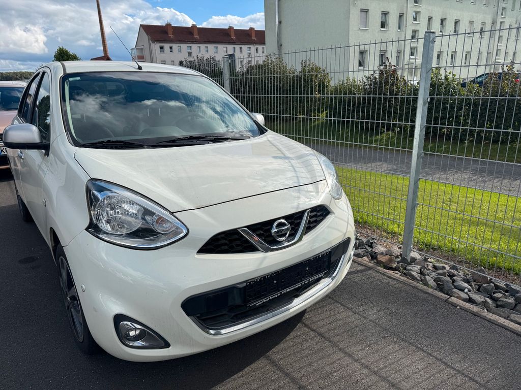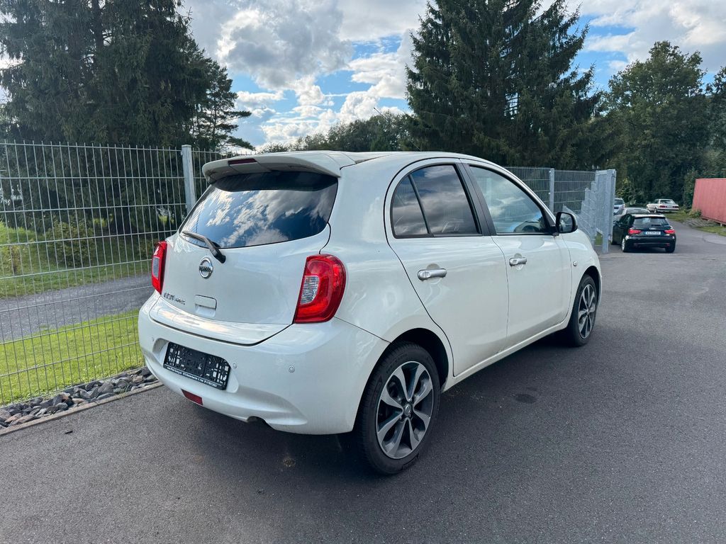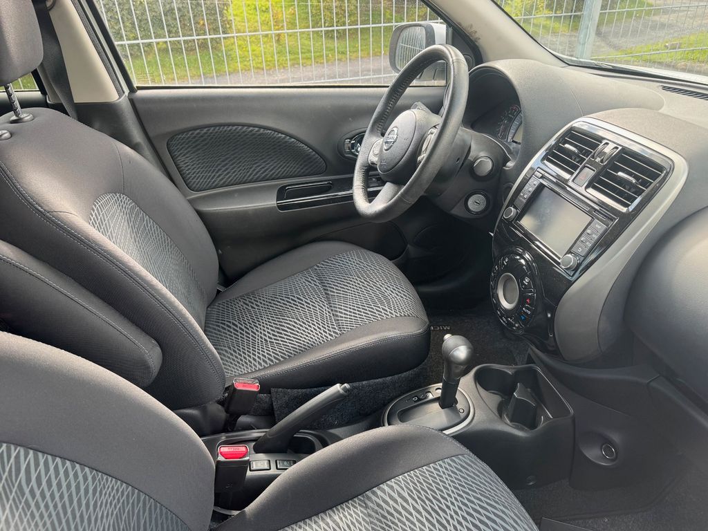 Airbag Beifahrerseite abschaltbar, Airbag Fahrer-/Beifahrerseite und Seitenairbag vorn, Audio-/Bordcomputerbedienung am Lenkrad, Außenspiegel elektr. anklappbar, Außenspiegel elektr. verstell- und heizbar, Außenspiegel Wagenfarbe, Bremsassistent (Nissan Brake-Assist), Comfort-Plus-Paket, Fernentriegelung Tankklappe, Frontscheibe Verbundglas, Gepäckraumabdeckung / Rollo, Heckscheibe heizbar, Innenspiegel abblendbar, Isofix-Aufnahmen für Kindersitz, Karosserie: 5-türig, Kopf-Airbag-System, Kopfstützen hinten verstellbar (links/rechts und mitte), Lenksäule (Lenkrad) höhenverstellbar, Leseleuchte vorn, LM-Felgen, Modellpflege, Motor 1,2 Ltr. - 72 kW KAT, Radioempfang digital (DAB), Reifendruck-Kontrollsystem, Reserverad als Notrad, Rücksitz geteilt/klappbar, Schadstoffarm nach Abgasnorm Euro 6, Schalt-/Wählhebelgriff Leder, Sitz vorn links höhenverstellbar, Sitzbezug / Polsterung: Stoff, Sitzheizung vorn, Sonnenblenden mit Spiegel, Start/Stop-Anlage, Steckdose (12V-Anschluß) in Mittelkonsole, Stoßfänger Wagenfarbe, Technology-Paket, Türgriffe innen verchromt, Türverkleidung mit Stoffeinsatz, Verglasung getönt, Verglasung hinten abgedunkelt