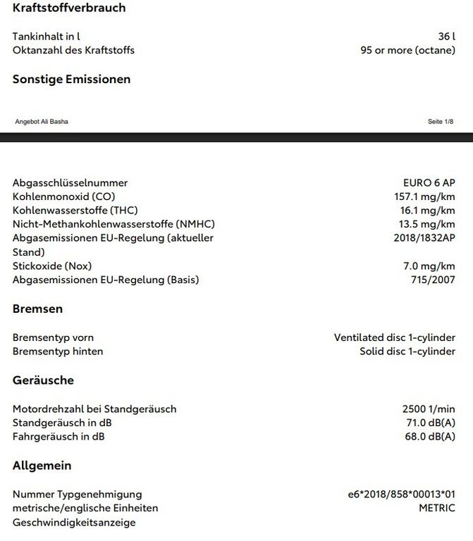 Stickoxide (Nox) 7.0 mg/km