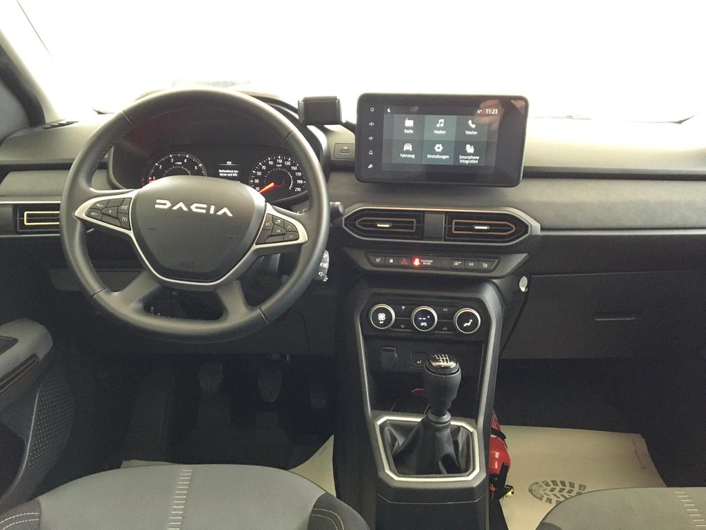 Erleben Sie den Dacia Sandero - ein praktisches und modernes Stadtauto mit überraschend umfangreicher Ausstattung. Diese grüne Limousine aus 2024 präsentiert sich in hervorragendem Zustand mit vollständiger Servicehistorie. Der sparsame 3-Zylinder Benzinmotor mit 999 ccm leistet 110 PS und überzeugt durch seine Frontantriebskonfiguration sowie das manuelle Schaltgetriebe. Die grüne Metallic-Lackierung harmoniert perfekt mit dem schwarzen Stoffinterieur.Die Ausstattung umfasst ein manuelles Klimatisierungssystem, LED-Scheinwerfer mit Kurvenlichtfunktion, Regensensor und Lichtsensor. Für Komfort sorgen beheizbare Sitze, elektrische Fensterheber und Außenspiegel. Das Infotainmentsystem bietet Navigation, Touchscreen, Apple CarPlay und Android Auto. Parksensoren vorne und hinten sowie eine Rückfahrkamera erleichtern das Rangieren. Die Sicherheit wird durch Front- und Seitenairbags, ABS, ESP, Berganfahrhilfe und Kollisionsvermeidungssystem gewährleistet.