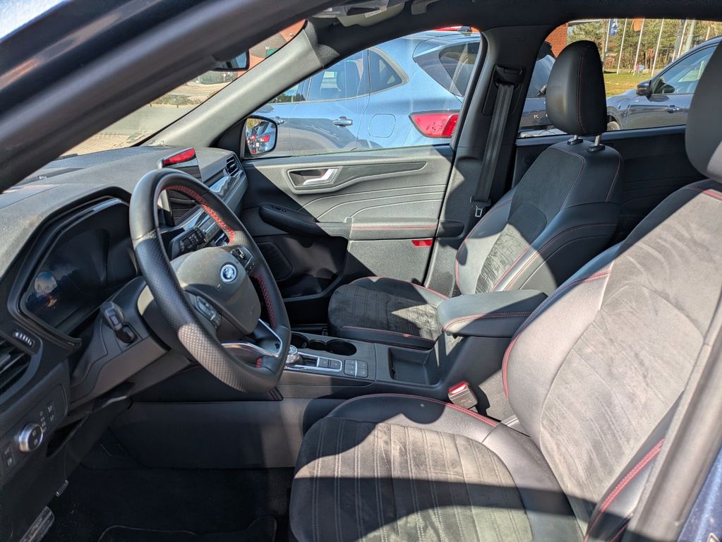 Akustischer Fußgängerschutz (Außensound, AVAS), Ambiente-Beleuchtung vorn (LED), Antischlupfregelung (ASR), Audio-Navigationssystem Ford mit AppLink, Außenspiegel elektr. anklappbar, Außenspiegel elektr. verstell- und heizbar, Body-Styling-Paket, Bordcomputer, Dachhimmel Stoff, dunkel, Dachreling schwarz, Doppelendrohr Auspuffanlage, Eco-Anzeige für verbrauchsoptimiertes Fahren (EcoCoach), Elektromotor 97 kW (Hybridantrieb), Fahrassistenz-System: Notbrems-Assistent, Fahrassistenz-System: Post-Collision-System, Fahrassistenz-System: Pre-Collision-System, Fahrassistenz-System: Spurhalteassistent, Fensterheber elektrisch vorn + hinten mit Komfortschließung, FordPass Connect inkl. eCall, Fußmatten ST-Design, Gepäckraumabdeckung / Rollo, Getriebe Automatik stufenlos - ECVT, Heckleuchten LED, Hybrid 165 kW (Motor 2,5 Ltr. - 112 kW), Induktionsladeschale für mobile Endgeräte, Innenspiegel mit Abblendautomatik, Intelligent Protection System (IPS), Isofix-Aufnahmen für Kindersitz, Karosserie: 5-türig, Kindersicherung elektrisch, Klimaautomatik 2-Zonen, Kofferraumdeckel / Heckklappe elektr. betätigt (Öffnung, sensorgesteuert), Kombiinstrument Digitalanzeige 12,3 Zoll, Kopfstützen vorn 4-fach verstellbar, Lenkrad (Sport/Leder, ST), Lenksäule (Lenkrad) höhen-/längsverstellbar, LM-Felgen, Mittelarmlehne hinten, My Key (2. Fahrzeugschlüssel programmierbar), Parkbremse elektrisch mit Auto-Hold-Funktion, Parkpilotsystem vorn und hinten, Radstand 2710 mm, Reifen-Reparaturkit, Reifendruck-Kontrollsystem, Rücksitzlehne geteilt, Rücksitzlehne klappbar, Schadstoffarm nach Abgasnorm Euro 6d, Schalt-/Wählhebelgriff Aluminium, Scheibenrahmen schwarz, Scheinwerfer mit Ausschaltverzögerung, Scheinwerfer-Assistent mit Tag-/Nachtsensor, Sitz vorn links elektr. verstellbar (10-fach), Sitz vorn rechts verstellbar (8-fach), Sitzbezug / Polsterung: Kunstleder / Stoff Wildleder Optik, Sitzheizung vorn, Sonnenblende links mit Spiegel (beleuchtet), Sonnenblende rechts mit Spiegel (beleuchtet), Spezialausführung 2, Sport-Fahrwerk, Sportsitze, Verglasung hinten abgedunkelt (Privacy Glass).