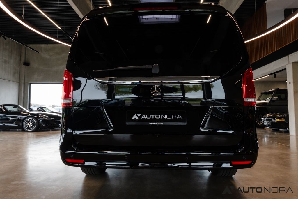 E4S Smartphone Integration Package, FB1 AMG carbon-look trim elements, FZ9 two additional main keys, H12 auxiliary hot-water heater (auxiliary heating), HH4 Thermotronic automatic climate control, HY1 remote control for auxiliary hot-water heater, HZ4 semi-automatic rear air conditioning (Tempmatic), LC9 Ambient lighting, LG2 LED Intelligent Light System, LG8 High-beam Assist Plus, PS2 AMG Line (AMG side skirts, AMG front apron, AMG roof edge spoiler, brushed aluminium sports pedals, black fabric headlining), R1U AMG 19-inch 7-spoke black alloy wheels, SE4 Lumbar support for front passenger seat, SE5 Lumbar support for driver’s seat, T19 Sliding door on the left (2 sliding doors), US5 Comfort 3-seater bench, US6 Single seat, 1st row, left, US7 Single seat, 1st row, right, V33 Carpeted rear floor, VL7 AMG floor mats, W32 Electrically extending rear passenger compartment fenders, W64 Separately opening rear window, W70 Tinted rear windows (privacy glazing), XM4 Acoustic package, Z3N Night package, ZH7 V-Class Edition