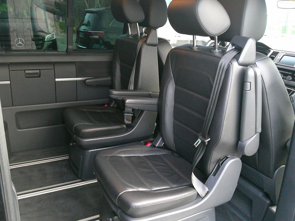 Abdeckung Schiebetürleiste, Airbag Beifahrer abschaltbar, Airbag Fahrer-/Beifahrerseite, Armaturentafel Komfort, Ausstattungs-Paket Licht + Sicht, Außenspiegel elektr. verstell-, heiz- und anklappbar, Außenspiegel konvex, links, Außenspiegel konvex, rechts, Außenspiegel und Türgriffe außen in Wagenfarbe, Bodenbelag im Fahrerhaus: Teppich, Bodenbelag: Teppich verstärkt, Chromleisten Stoßfänger vorn, seitlich und Heckklappe unten, Doppeltonfanfare, Dämmglas-Paket, Fahrassistenz-System: Bremsassistent (HBA), Fahrassistenz-System: Multikollisionsbremse (Multi Collision Brake), Fahrassistenz-System: Müdigkeitserkennungs-Sensor, Fahrassistenz-System: Spurwechselassistent (Side Assist / Blind Spot Sensor), Fahrwerk 17", Funkschlüssel (2) klappbar, Fußmatten Fahrerhaus: Velours, Gepäckraumabdeckung / Rollo, Haltegriffe A-Säulen, Handschuhfach abschließbar, Heckklappe mit Verglasung, Heckscheibe heizbar, mit Wischanlage, Innenausstattung: Dekoreinlagen Dark Silver brushed (Dekorband Black Glossy), Innenleuchten im Fahrerhaus: Leseleuchten vorn (2), Innenleuchten im Lade-/FG-Raum: Trittstufenleuchten, Innenraumfilter: Pollenfilter, Karosserie/Aufbau: Bus, Kindersicherung an den Schiebetüren, Klapptisch integriert Lade-/Fahrgastraum, Klimaautomatik Climatronic (Fahrerhaus + Lade-/Fahrgastraum), Kraftstofftank: 80 Ltr., Kühlergrill schwarz lackiert, mit Chromleisten, Ladekanten-/ Trittstufenabdeckungen in Edelstahl, Lenksäule (Lenkrad) verstellbar, Motor 2,0 Ltr. - 146 kW TDI, Multifunktionsanzeige Premium (Farbdisplay), Multimedia-Schnittstelle USB (iPhone / iPod) mit AUX-IN, Nichtraucher-Paket, Radstand 3000 mm, Reifenkontroll-Anzeige, Schadstoffarm nach Abgasnorm Euro 6d-TEMP, Scheinwerfer und Heckleuchten LED, Schiebetür Lade-/Fahrgastraum rechts, Seitenscheiben Dämmglas, Sitze im Fahrerhaus: Beifahrersitz Komfort, Sitze im Fahrerhaus: Fahrer- und Beifahrersitz heizbar, Sitze im Fahrerhaus: Fahrer- und Beifahrersitz höhenverstellbar, Sitze im Fahrerhaus: Fahrersitz Komfort, Sitze im Fahrerhaus: Lendenwirbelstützen Fahrer- und Beifahrersitz, Sitze im Lade-/FG-Raum: 1.Reihe, 2 Drehsitze, Sitze im Lade-/FG-Raum: 2.Reihe, 3er-Sitzbank, Sonnenblenden mit Spiegel (beleuchtet), Sonnenschutzrollo im Fahrgastraum, Start/Stop-Anlage Motor, Steckdose (12V-Anschluß) im Fahrerhaus, Stoßfänger in Wagenfarbe, Türablagekasten vorn, Verkleidung im Lade-/FG-Raum: Komfort, Zentralverriegelung mit Fernbedienung und Innenbetätigung, Zuheizer, Zul. Gesamtgewicht 3,00 t, Sitzheizung vorn
