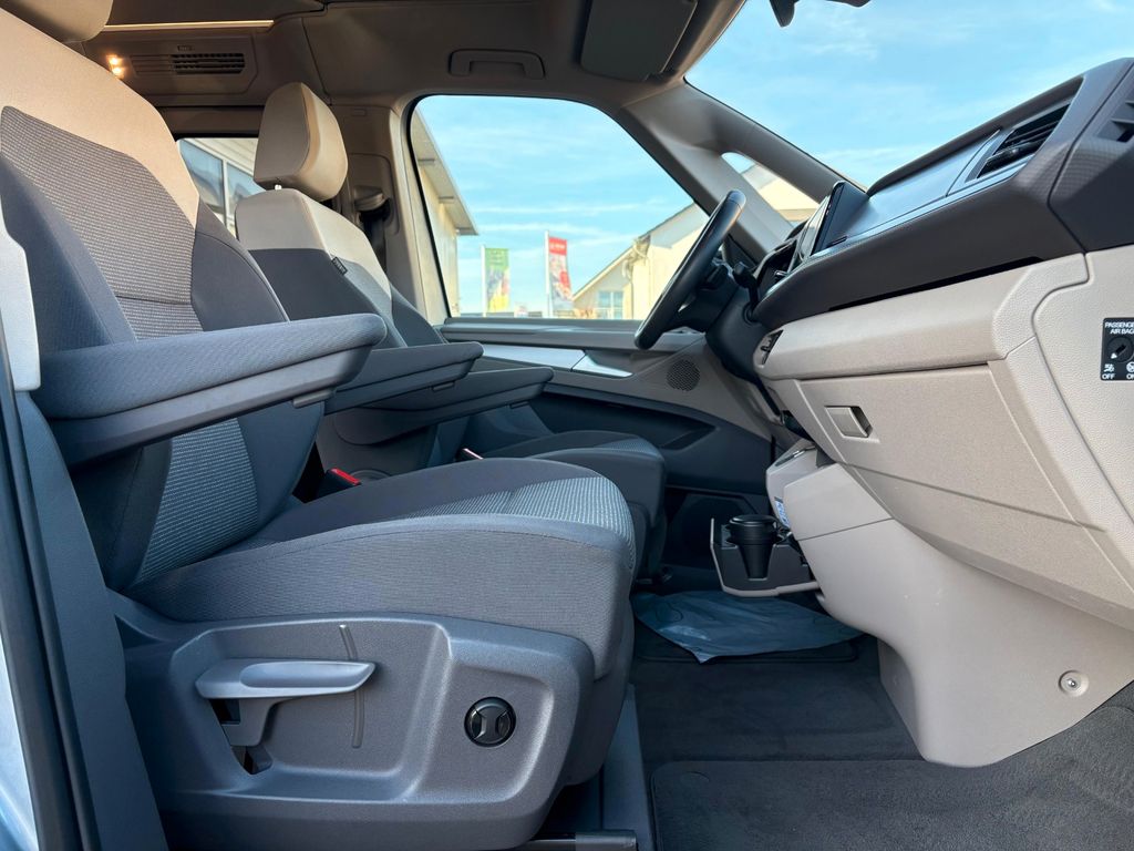 Allwetter-/ Ganzjahresreifen, Anhängerkupplung klappbar (elektr. Entriegelung), Audio-Navigationssystem Discover Pro (Touchscreen-Farbdisplay 10", inkl. Streaming & Internet), Aufstelldach elektro-hydraulisch betätigt mit Bugfenster und Frontöffnung, Faltenbalg grau, Fahrassistenz-Paket Basic, Fußmatten Fahrerhaus: Textil, Heckklappe mit Verglasung und Zuziehhilfe, Innenbeleuchtung an Aufstelldach, Heckklappe, Sommerküche (Coast / Ocean) Ambiente-Beleuchtung am Dachrahmen, Keyless-Start mit Safesicherung, Klimaanlage Climatronic 3-Zonen inkl. Fondbedienung, Lackierung: Metallic-Lackierung, Licht-Paket, LM-Felgen 6,5x17 (Dundrod), Markise (Gehäuse und Markisenleisten schwarz, links), Mobiltelefon Schnittstelle Comfort mit kabelloser Ladefunktion, Park-Paket Basic, Raucher-Paket, Schiebetüren Lade-/Fahrgastraum links/rechts inkl. Zuziehhilfe, Sitze im Fahrerhaus: Fahrer- und Beifahrersitz heizbar, Standheizung für Dauerbetrieb und kraftstoffbetriebene Zusatzheizung