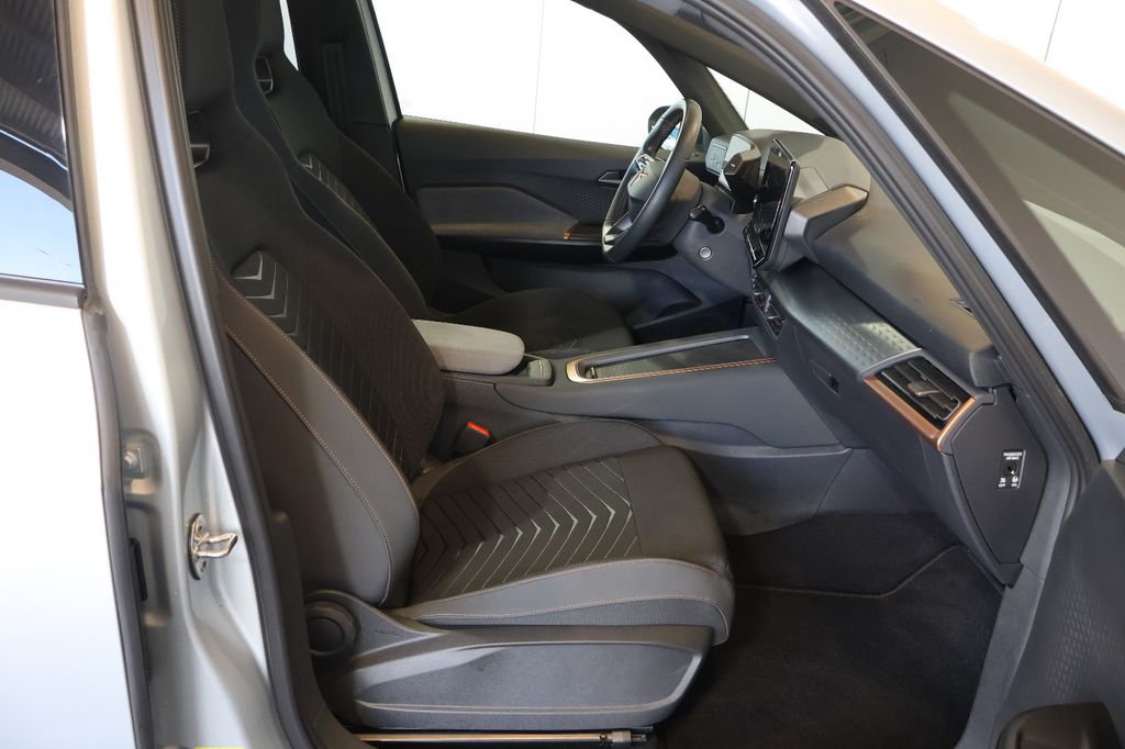 5 Lautsprecher, Airbag Beifahrerseite abschaltbar, Airbag Fahrer-/Beifahrerseite, Akustischer Fußgängerschutz, Außensound (e-sound / AVAS), Ambiente-Beleuchtung LED, Antriebs-Schlupfregelung (ASR), Außenspiegel elektr. verstell-, heiz- und anklappbar mit Spiegelabsenkung und Welcome Light, Blinkleuchten LED in Außenspiegel integriert, Bluetooth-Schnittstelle mit Freisprecheinrichtung integriert, Dachhimmel schwarz, Einparkhilfe vorn und hinten, Elektromotor 170 kW (cont. 70 kW), Fahrassistenz-System: Fahrprofilauswahl (CUPRA Drive Profile), Fensterheber elektrisch vorn + hinten mit Komfortschaltung, Fußraumbeleuchtung LED, Heckleuchten Voll-LED mit Lichtband (Infinite Light), Heckspoiler Wagenfarbe (Dachspoiler), HV-Batterie 62 kWh brutto / 58 kWh netto, Innenspiegel mit Abblendautomatik, Isofix-Aufnahmen für Kindersitz an Beifahrersitz und Rücksitz (inkl. i-Size-Kindersitze), Karosserie: 5-türig, Klimaanlage Climatronic 2-Zonen, Kombiinstrument digital (virtual cockpit), Kopf-Airbag-System, Ladekabel mit Typ 2-Stecker (Mode 3), Notrufsystem, Parkbremse elektrisch, Pedale Aluminium-Design, Rücksitzlehne geteilt/klappbar (1/3-2/3), Schnellladevorrichtung (CCS-Ladedose), Schriftzug auf der Heckklappe, Seitenairbag, Seitenairbag vorn mitte (Central Airbag), Sitz vorn links höhenverstellbar, Sitzbezug / Polsterung: Stoff, Sonnenblende links mit Spiegel (beleuchtet), Sonnenblende rechts mit Spiegel (beleuchtet), Sport-Schalensitze vorn mit integrierten Kopfstützen, USB-Ladeanschlüsse (2-fach, Typ C) für 2.Sitzreihe, Warnanlage für Sicherheitsgurt-System, Wärmeschutzverglasung