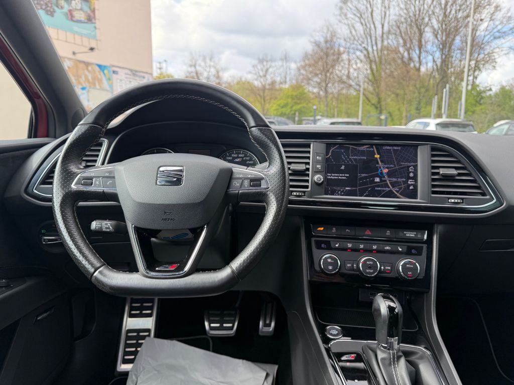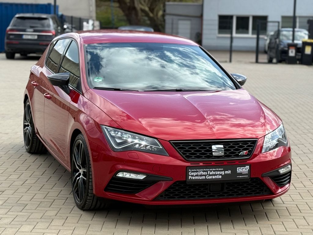 Ablage-Paket, Ablagetasche an Vordersitzlehnen, Airbag Beifahrerseite abschaltbar, Airbag Fahrer-/Beifahrerseite, Antriebs-Schlupfregelung (ASR), Außenspiegel elektr. anklappbar, Außenspiegel elektr. verstell- und heizbar, beide, Außenspiegel elektr. verstell-, heiz- und anklappbar, beide, Außenspiegel mit Spiegelabsenkung, rechts, Außentemperaturanzeige, Bordcomputer, Bremsassistent, Bremssättel Rot lackiert, Bremssättel Rot lackiert mit Schriftzug, Dynamic-Paket, Elektron. Differentialsperre (EDS), Fahrassistenz-System: Berganfahr-Assistent (Hill-Holder), Fahrassistenz-System: Fahrprofilauswahl (SEAT Drive Profile), Fahrassistenz-System: Umfeldbeobachtungssystem (Front assist) mit City-Notbremsfunktion, Fensterheber elektrisch hinten, Handschuhfach beleuchtet, Innenraumlicht-Paket LED, Isofix-Aufnahmen für Kindersitz, Karosserie: 5-türig, Kennzeichenbeleuchtung LED, Klimaanlage Climatronic 2-Zonen, Knieairbag Fahrerseite, Kopf-Airbag-System, Kopfstützen hinten (3-fach), Lendenwirbelstütze Sitz vorn links, verstellbar, Lendenwirbelstütze Sitz vorn rechts, verstellbar, Lenkrad (Sport/Leder), Licht- und Sicht-Paket, LM-Felgen, Mittelarmlehne hinten, Modellpflege, Motor 2,0 Ltr. - 221 kW 16V TSI, Parkbremse elektrisch, Reifenkontroll-Anzeige, Rücksitzlehne geteilt/klappbar (1/3-2/3), Schadstoffarm nach Abgasnorm Euro 6, Schalt-/Wählhebelgriff Leder, Scheinwerfer LED, Seitenairbag, Seitenscheiben hinten und Heckscheibe abgedunkelt, Sitz vorn links höhenverstellbar, Sitz vorn rechts höhenverstellbar, Sonnenblende links mit Spiegel (beleuchtet), Sonnenblende rechts mit Spiegel (beleuchtet), Sport-Fahrwerk FR / Cupra, Sport-Schalensitze vorn mit integrierten Kopfstützen, Start/Stop-Anlage, Stau-/Ablagefach unter Sitze vorn, Steckdose (12V-Anschluß) vorn, Wärmeschutzverglasung