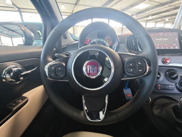 - Weiteres: Antriebs-Schlupfregelung (ASR), BORDCOMPUTER, Reifendruck-Kontrollsystem, Geschwindigkeits-Regelanlage (Tempomat), Schalt-/Wählhebelgriff Leder, Isofix-Aufnahmen für Kindersitz an Rücksitz, Reifen-Reparaturkit, Knieairbag Fahrerseite, Fernbedienung für Zentralverriegelung und Verdeck, LM-Felgen, Schadstoffarm nach Abgasnorm Euro 6d, Sitzbezug / Polsterung: Stoff / Vinyl, Innenraumfilter: Pollenfilter, Mild-Hybrid 51 kW (Motor 1,0 Ltr. - 51 kW), Klimaanlage, Lenkrad (Leder) mit Multifunktion für Audio, Einparkhilfe hinten, Einparkhilfe elektronisch, Airbag Fahrer-/Beifahrerseite, Anti-Blockier-System (ABS), Nebelscheinwerfer, Rücksitz geteilt / klappbar, Stoßfänger Wagenfarbe, Tagfahrlicht LED, Außenspiegel elektr. verstellbar, beide, Fensterheber elektrisch vorn, Lenksäule (Lenkrad) höhenverstellbar, Seitenairbag vorn, Wegfahrsperre (elektronisch), Kopf-Airbag-System vorn, Kopf-Airbag-System vorn und hinten, Elektron. Stabilitäts-Programm (ESP / ESC), Metallic-Lackierung, Abgasblende verchromt, Audiobedienung am Lenkrad, Außenspiegel verchromt, Autom. Begleitfunktion der Beleuchtung (Follow me home), Automatische Türverriegelung, Beifahrerairbag abschaltbar, Berganfahrhilfe, Bremsassistent, Einstiegsleisten (verchromt), Elektr. Bremskraftverteilung, Elektrische Servolenkung Dual-Drive, Faltdach elektrisch, Fensterzierleisten verchromt, Geschwindigkeits-Begrenzeranlage, Gurtstraffer vorn, Heckscheibe heizbar, Heckspoiler, Infotainment-System: UConnect mit MP3-Player, DAB Radioempfang (Touchscreen), Komfort-Paket, Kühlergrill verchromt, Lederlenkrad, Radioempfang digital (DAB+), Seitenschutzleisten lackiert inkl. Emblem 500, Sitzhöhenverstellung Fahrersitz, Smartphone Schnittstelle, Start/Stop-Anlage, Steckdose (12V-Anschluß) im Armaturenbrett, Tagfahrlicht, Tasche an Sitz vorn rechts, Wärmeschutzverglasung, ZV mit Fernbedienung