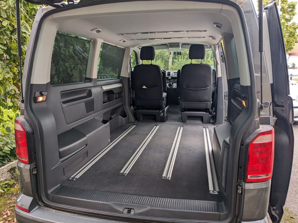 Airbag Beifahrer abschaltbar, Airbag Fahrer-/Beifahrerseite, Außenspiegel elektr. verstell- und heizbar, Außenspiegel und Türgriffe außen schwarz, Bodenbelag im Fahrerhaus: Teppich, Bodenbelag im Lade-/Fahrgastraum Teppich, Campingtisch, Fenster im Lade-/FG-Raum: vorn und hinten links feststehend, Funkschlüssel (2) klappbar, Haltegriffe A-Säulen, Handschuhfach abschließbar, Heckklappe mit Verglasung, Heckscheibe heizbar, mit Wischanlage, Innenleuchten im Lade-/FG-Raum: Trittstufenleuchten, Innenraumfilter: Pollenfilter, Innenspiegel abblendbar, Karosserie/Aufbau: Bus, Kindersicherung an den Schiebetüren, Lenksäule (Lenkrad) verstellbar, Mobiltelefon Schnittstelle Bluetooth, Motor 2,0 Ltr. - 75 kW TDI, Reifen-Reparaturkit, Reifenkontroll-Anzeige, Reserverad, Schadstoffarm nach Abgasnorm Euro 6, Schiebetür Lade-/Fahrgastraum rechts, SCR-System (AdBlue-Technologie), Seitenairbag, Sitzbezug / Polsterung: Stoff, Sitze im Fahrerhaus: Beifahrersitz Komfort, Fahrer- und Beifahrersitz höhenverstellbar, Fahrersitz Komfort, Sitze im Lade-/FG-Raum: 2.Reihe, 3er-Sitzbank, Sonnenblenden mit Spiegel, Start/Stop-Anlage Motor, Steckdose (12V-Anschluß) im Fahrerhaus und Kofferraum, Stoßfänger in Wagenfarbe, Wärmeschutzverglasung, Zentralverriegelung mit Fernbedienung und Innenbetätigung, Fahrradträger, Tisch, Dachgepäckträger