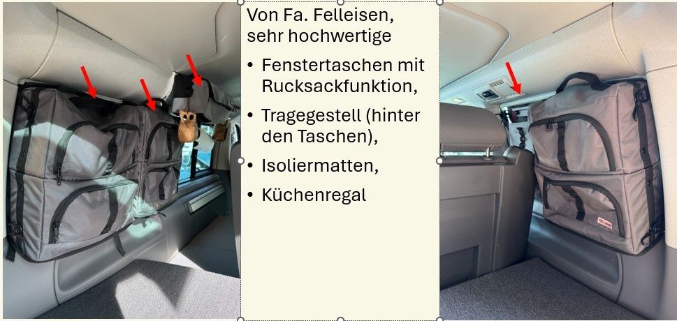 - zusätzliches praktisches Zubehör wie Fenstertaschen von Felleisen und California Heckauszug
