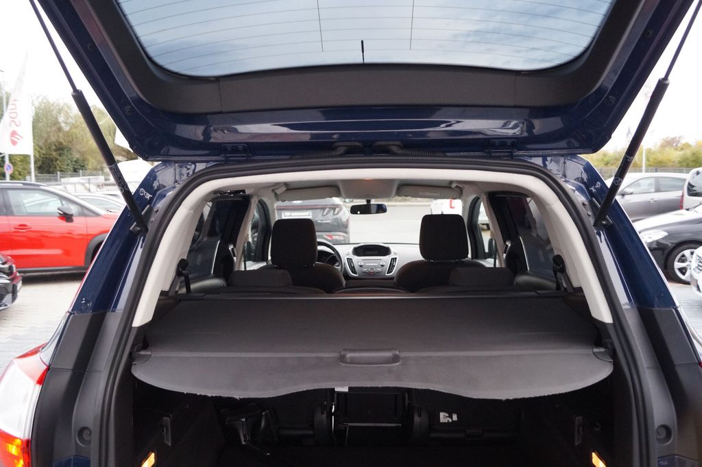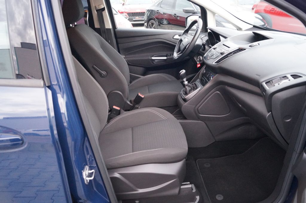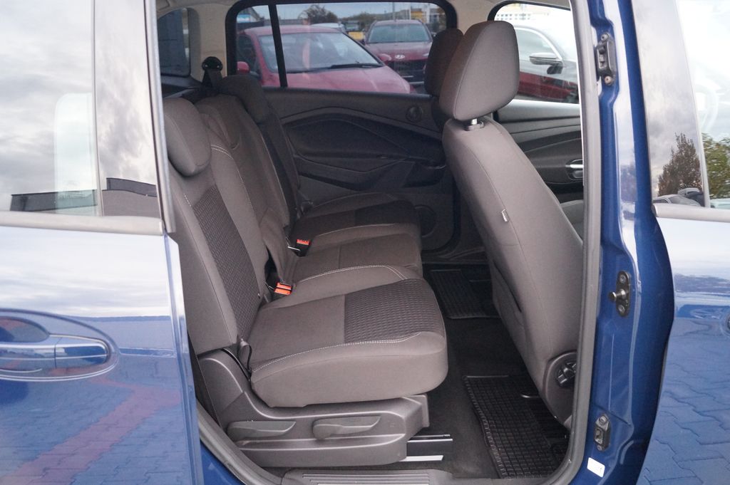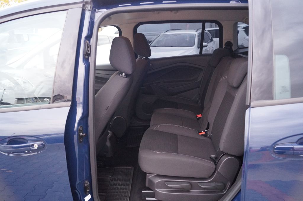 6 Lautsprecher, Antischlupfregelung (ASR), Audiosystem: Radio mit CD-Player (MP3-fähig), Außenspiegel elektr. verstell- und heizbar, Blinkleuchte in Außenspiegel integriert, Bordcomputer, Dachspoiler Wagenfarbe, Elektr. Bremskraftverteilung (EBD), Fahrassistenz-System: Berganfahr-Assistent (Hill-Holder), Fensterheber elektrisch vorn + hinten mit Komfortschließung, Flexibles Sitzsystem FFS, Gepäckraumabdeckung / Rollo, Innenraumfilter: Staub- und Pollenfilter, Intelligent Protection System (IPS), Isofix-Aufnahmen für Kindersitz, Karosserie: 5-türig, Kindersicherung elektrisch, Komfortsitze vorn, Kopfstützen hinten verstellbar, Lendenwirbelstütze Sitz vorn links, Lenksäule (Lenkrad) höhen-/längsverstellbar, Mittelkonsole, Motor 1,0 Ltr. - 92 kW EcoBoost KAT, My Key (2. Fahrzeugschlüssel programmierbar), Reifendruck-Kontrollsystem, Schadstoffarm nach Abgasnorm Euro 6, Schalt-/Wählhebelgriff Leder, Schiebetüren beidseitig, Sitz vorn links höhenverstellbar, Start/Stop-Anlage, Steckdose (12V-Anschluß) im Koffer-/Laderaum, Stoßfänger Wagenfarbe, Stoßfängergrill, Rahmen Chrom, Türgriffe außen Wagenfarbe, Verglasung getönt
