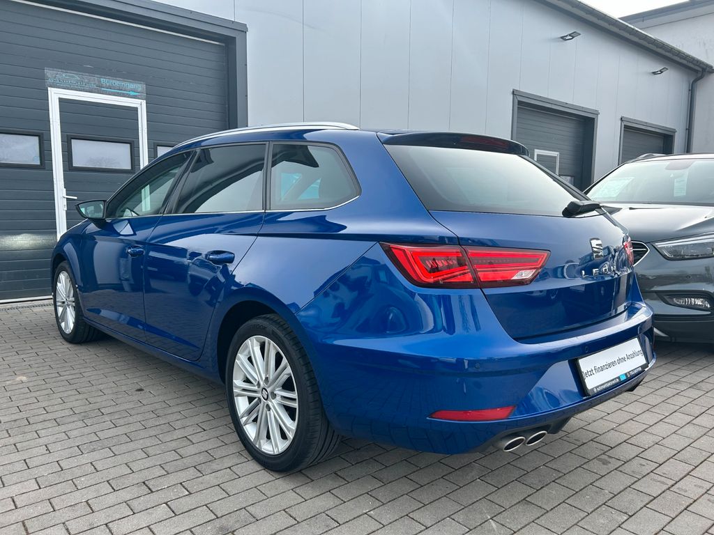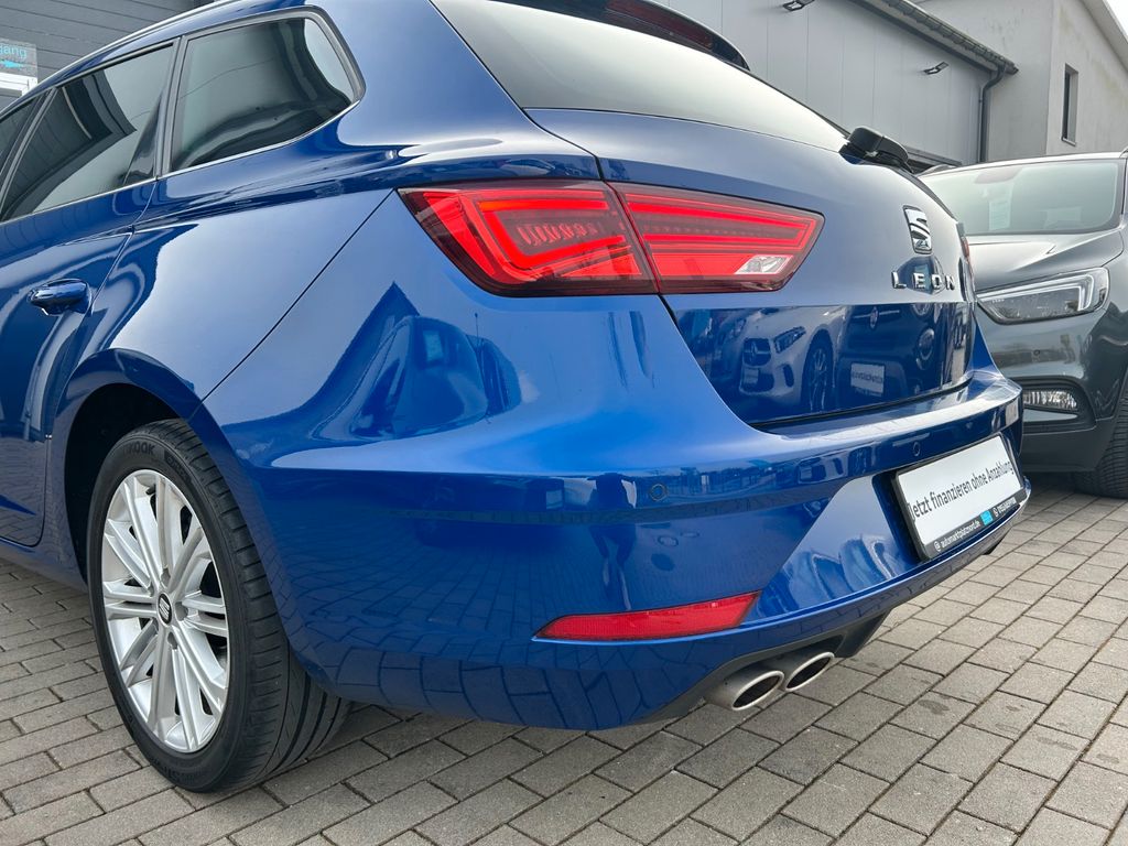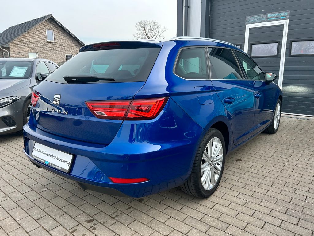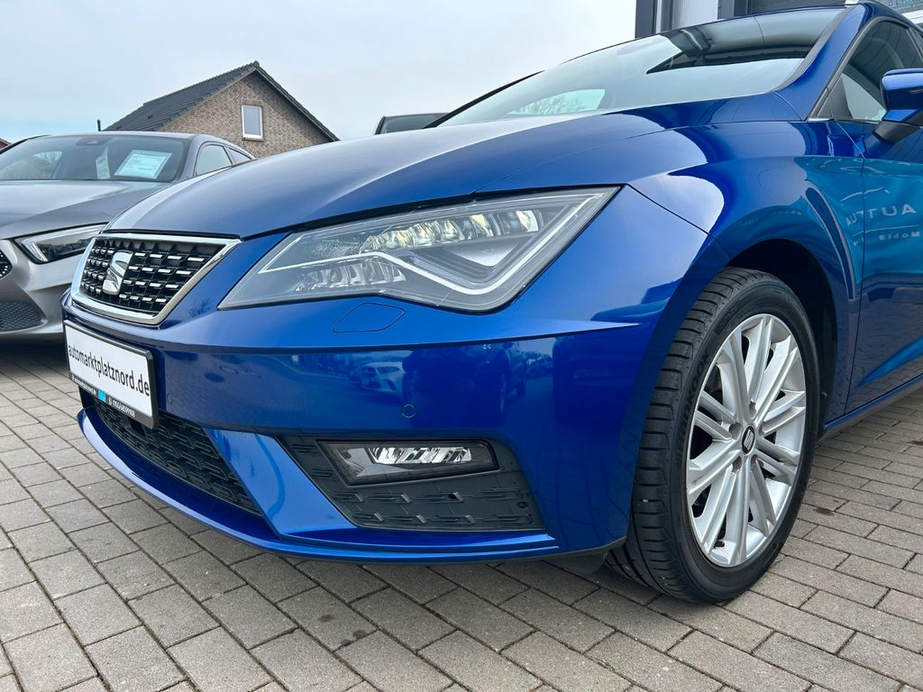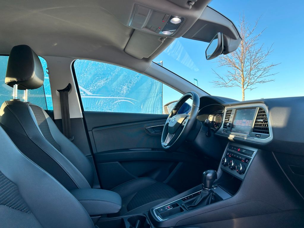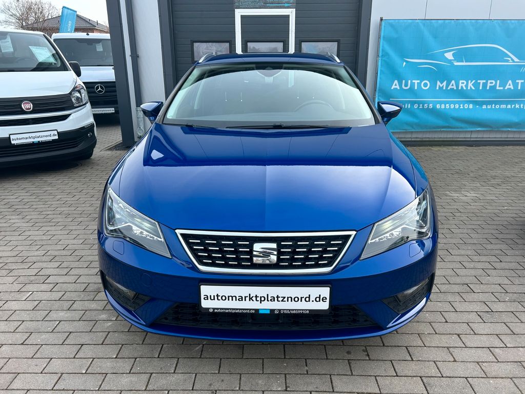 Herzlich Willkommen beim Auto Marktplatz Nord. Dieser gepflegte SEAT Leon Kombi aus 2020 überzeugt mit seiner umfangreichen Ausstattung und modernen Technik. Der 150 PS starke Benzinmotor mit 1498 ccm Hubraum und Automatikgetriebe sorgt für angenehmes Fahren bei gleichzeitig guter Effizienz (Euro 6). Das Fahrzeug verfügt über ein fortschrittliches Infotainmentsystem mit Navigationssystem, Touchscreen, Apple CarPlay, Android Auto und digitalem Cockpit. Die Teilledersitze in Schwarz harmonieren perfekt mit der blauen Metallic-Lackierung. Für zusätzlichen Komfort sorgen die 3-Zonen-Klimaautomatik, beheizte Sitze, Lenkradheizung und Ambientbeleuchtung. Zahlreiche Assistenzsysteme wie adaptiver Tempomat, Spurhalteassistent, Totwinkelwarner und Verkehrszeichenerkennung erhöhen die Sicherheit. Das Fahrzeug wurde scheckheftgepflegt und hatte nur zwei Vorbesitzer.- Sportpaket mit Sportsitzen und Ambientbeleuchtung