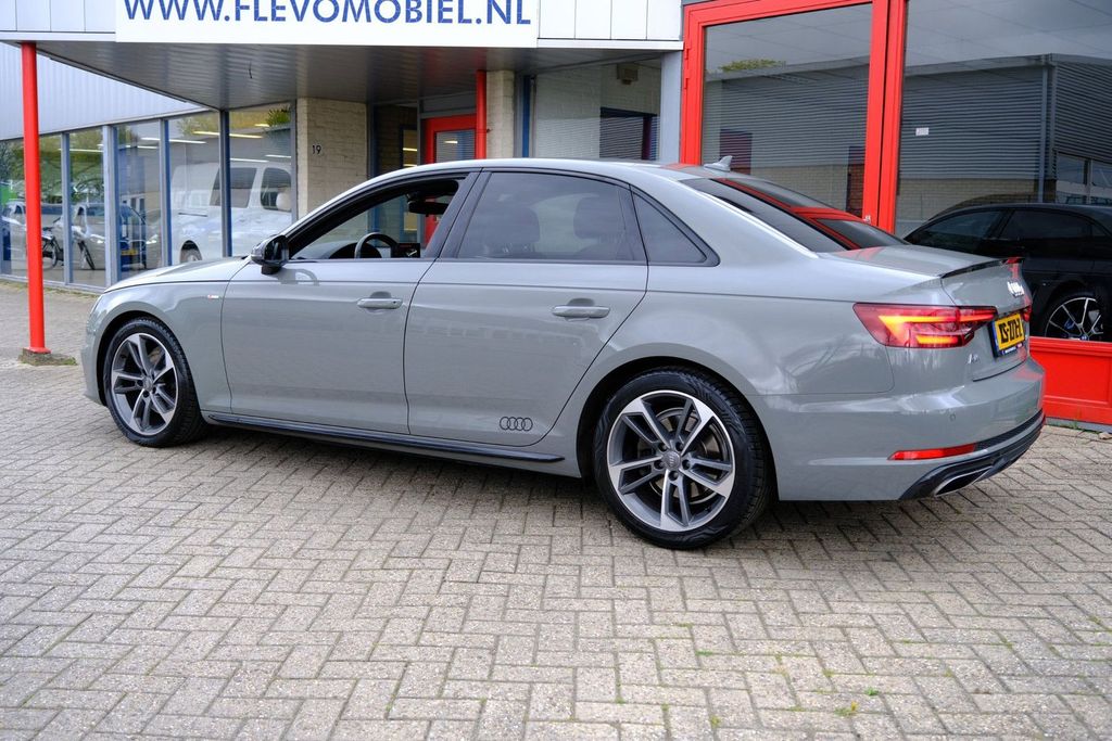 This car invites you to take a seat behind the sports steering wheel and hit the road immediately. When it comes to presence, the effect of the S-Line styling is undeniable. This Audi is powered by a four-cylinder engine and an automatic transmission. This Audi features beautiful and comfortable leather upholstery. In this version, the A4 Sedan is equipped with stylish yet functional sports seats. The tailgate opens automatically at the touch of a button. Handy when your hands are full. Thanks to matrix LED lighting, the headlights provide dayli