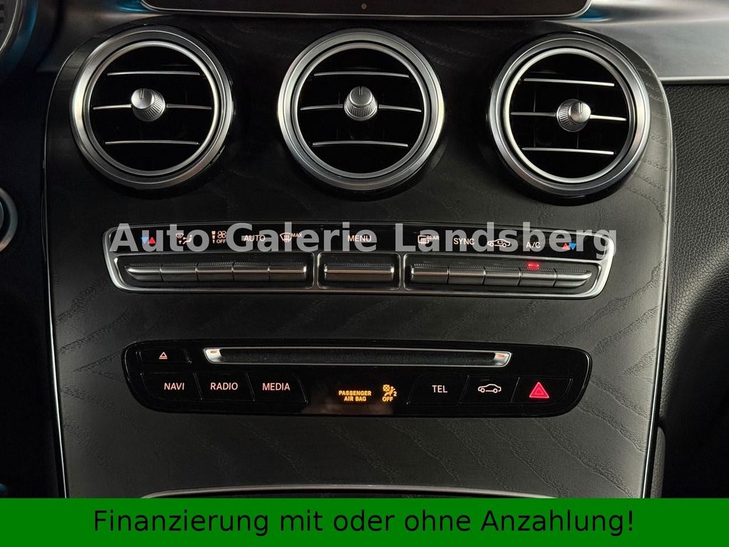 Mercedes GLC 43 AMG 4Matic Coupé, 3,0-Liter-Benziner mit spritzigen 367 PS, 9-Gang-Automatik, Allradantrieb, LED-Scheinwerfer, LED-Heckleuchten, sportliche 20-Zoll-Alufelgen (AMG, Vielspeichen, schwarz, glanzgedreht), Glas-Schiebedach, Navigation COMAND, Bluetooth, Ambientebeleuchtung, bequeme elektrische Sportsitze (Leder/Alcantara), Parksensoren vorne und hinten inkl. Rückfahrkamera, Abstandstempomat (Distronic), Auffahrwarnung, Lederlenkrad inkl. Multifunktionstasten und Schaltwippen, Sitzheizung, 2-Zonen-Klimaautomatik, Licht- und Regensensor.