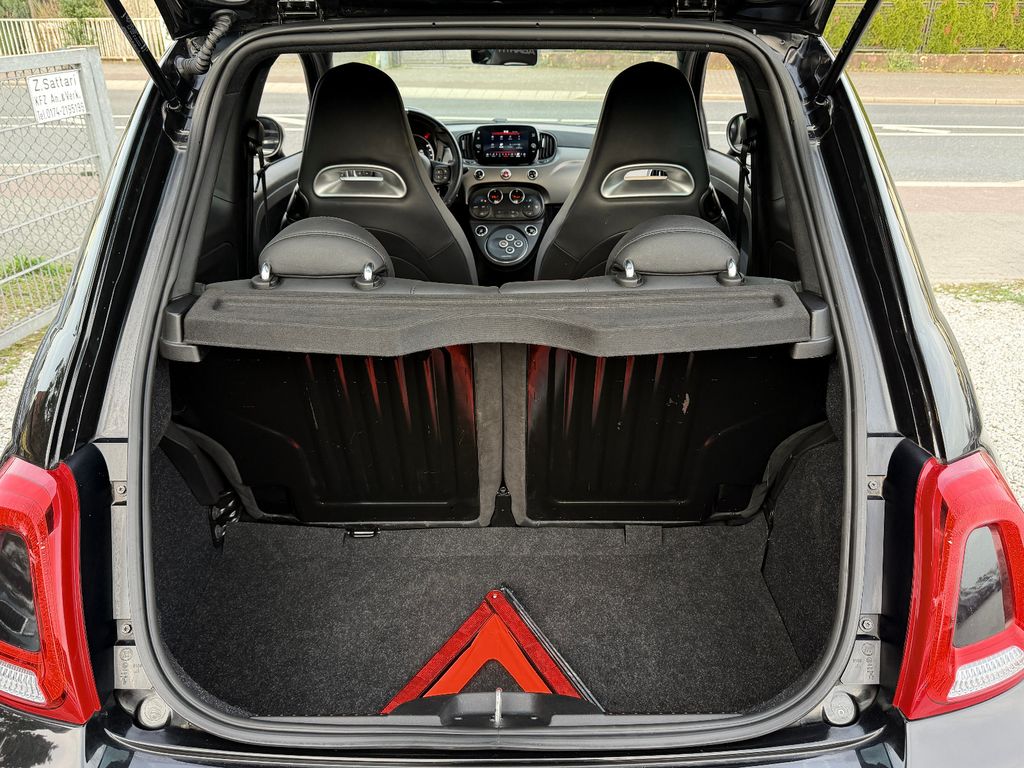 Adaptives Dämpfersystem an der Hinterachse (Frequenzy Selective Damping), Airbag Fahrer-/Beifahrerseite, Antischlupfregelung (ASR) + ABS, Außenspiegel elektr. verstell- und heizbar, beide, Außenspiegel Wagenfarbe, Bremssättel grau lackiert, Einparkhilfe hinten, Elektron. Traktionskontrolle, Exterieurumfänge Chrom, Fußmatten, Infotainment-System: UConnect mit MP3-Player, DAB Radioempfang (Touchscreen 7"), Innenausstattung: Einlagen Armaturenbrett, lackiert, Innenausstattung: Einlagen Armaturenbrett, Schwarz Matt, Innenausstattung: Leder-Applikationen, Isofix-Aufnahmen für Kindersitz an Rücksitz, Karosserie: 3-türig, Kopf-Airbag-System vorn, Ladedruckanzeige, Lenkrad (Leder/Alcantara, mit Carbon-Einsatz), Lenkrad (Sport/Leder) mit Multifunktion, Lenksäule (Lenkrad) höhenverstellbar, LM-Felgen, Luftfilter: Sportluftfilter, Modellpflege, Motor 1,4 Ltr. - 121 kW 16V Turbo KAT, Motor-Schleppmoment-Regulator (MSR), Multifunktionsanzeige mit Farbdisplay, Rücksitz geteilt / klappbar, Schadstoffarm nach Abgasnorm Euro 6d, Schalt-/Wählhebelgriff Leder, Seitenscheiben hinten abgedunkelt, Seitenschweller Wagenfarbe, Smartphone Schnittstelle (Apple CarPlay & Android Auto), Sport-Auspuffanlage, Sport-Fahrwerk tiefergelegt, Sportsitze mit Logo Abarth, Steckdose (12V-Anschluß) in Mittelkonsole