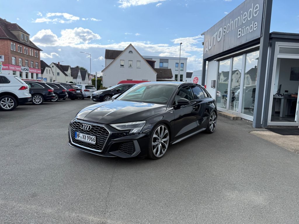 Airbag Beifahrerseite abschaltbar, Airbag Fahrer-/Beifahrerseite, Audi connect (Notruf- und Assistance-System), Außenspiegel asphärisch, links, Außenspiegel konvex, rechts, Außenspiegel Wagenfarbe, Dachhimmel Stoff, Dachkantenspoiler S-line, Einstiegsleisten mit Aluminiumeinlage und Schriftzug, beleuchtet, Fahrassistenz-System: Ausweich-Assistent, Fahrassistenz-System: Bremsassistent (Audi pre sense front), Fahrassistenz-System: Spurverlassenswarnung, Frontscheibe Wärmeschutzverglasung, Fußmatten Velours, Geschwindigkeits-Begrenzeranlage, Innenausstattung: Dekoreinlagen Akzentteile in der Armaturentafel in Glasoptik schwarz, Innenausstattung: Dekoreinlagen Seideneffektlack, Platinum-Grau, Isofix-Aufnahmen für Kindersitz, Karosserie: 4-türig, Kindersicherung elektr. betätigt, Kopf-Airbag-System (Sideguard), Kopfstützen hinten (3-fach), Lenksäule (Lenkrad) mech. Höhen-/Längsverstellung, LM-Felgen, Mild-Hybrid-Technologie, Modellvariante COD (cylinder on demand), Motor 1,5 Ltr. - 110 kW 16V TSI ACT, Multi-Media-Interface MMI Basic Plus / MMI Radio Plus, Otto-Partikelfilter (OPF), Parkbremse elektro-mechanisch, Radioempfang digital (DAB), Reifendruck-Kontrollsystem, Rücksitzlehne geteilt/klappbar, Schadstoffarm nach Abgasnorm Euro 6d, Seitenairbag vorn, Sitzbelegungserkennung für Sicherheitsgurte, Sport-Fahrwerk, Start/Stop-Anlage, Stoßfänger Sport-Design (S-line), Universal-Schnittstelle Bluetooth