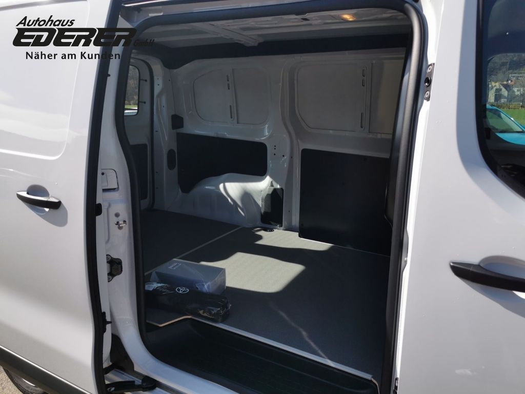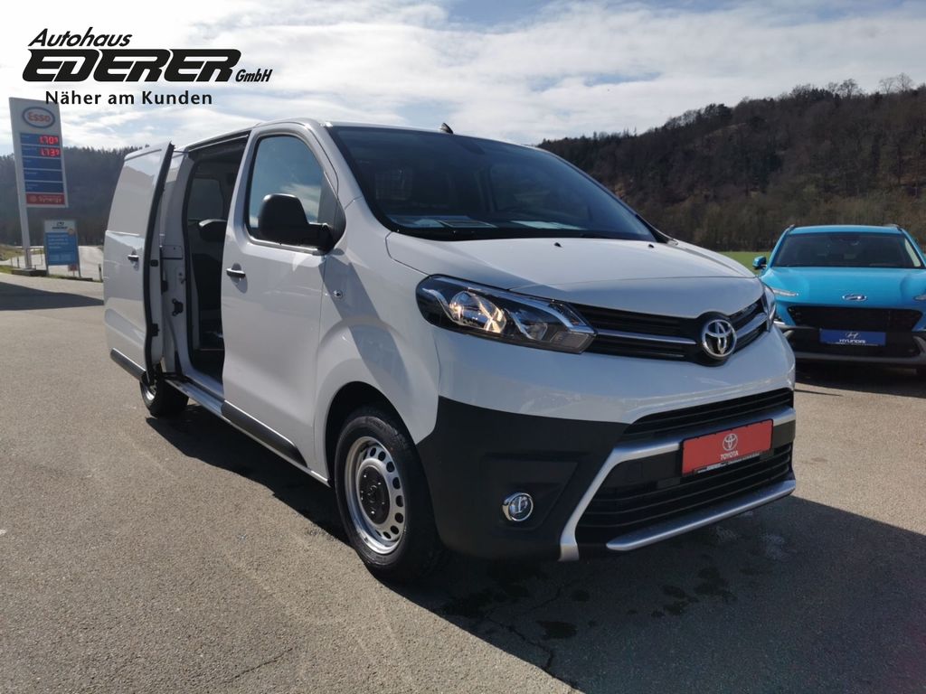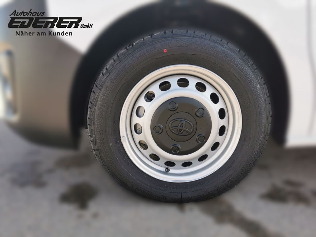 - Weiteres: Scheinwerfer-Reinigungsanlage (SRA), Getriebe 6-Gang, Klimaanlage, Geschwindigkeits-Regelanlage (Tempomat), Mittelarmlehne vorn, Rußpartikelfilter, Scheibenwischer mit Regensensor, Reserverad in Fahrbereifung, Einparkhilfe hinten, Radstand 3275 mm, Airbag Fahrer-/Beifahrerseite, Anti-Blockier-System (ABS), Nebelscheinwerfer, Außenspiegel elektr. verstell- und heizbar, Wegfahrsperre, Lenksäule (Lenkrad) verstellbar, Fensterheber vorn elektr. mit Einklemmschutz, Schiebetür Fahrgast-/Laderaum rechts, Sitzausstattung: 3-Sitzer, Navigationssystem: Multimedia Toyota Touch Pro, Navigationssystem mit Sprachsteuerung (VCS), Motor 2,0 Ltr. - 106 kW D-4D KAT, Audiosystem: Multimedia Toyota Pro Touch, Außenspiegel elektr. anklappbar, Beifahrerdoppelsitz, Berganfahrkontrolle (HAC), Bordcomputer, Chromeinfassung für Nebelscheinwerfer, Comfort-Paket, DAB-Tuner (Radioempfang digital), Einparkhilfe vorn und hinten, Elektr. Bremskraftverteilung, Elektron. Stabilitäts-Programm (VSC), Farbmonitor, Fernlichtassistent (Abblendautomatik Fahrlicht, AHB), Freisprechanlage Bluetooth, Geschwindigkeits-Begrenzeranlage, Handschuhfach mit Kühlfunktion, Heckflügeltüren mit Verglasung, Heckscheibe heizbar, Heckscheibenwischer, Karosserie/Aufbau: Kasten, Komfortsitze, Laderaumtrennwand mit Fenster, Lendenwirbelstütze vorn links, Müdigkeitserkennungs-Sensor, Radio-Fernbedienung am Lenkrad, Seitenschutzleisten schwarz, Servolenkung elektrisch, Sicht-Paket, Sitzhöhenverstellung Fahrersitz, Smartphone-Integration x-connect (Apple CarPlay und Android Auto), Tagfahrlicht, Totwinkel-Assistent, Universal-Schnittstelle (USB-/ iPod-/ AUX-Anschluss), ZV mit Fernbedienung