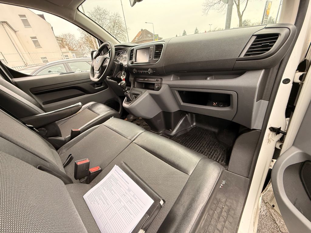 3. Bremsleuchte, Airbag Fahrer-/Beifahrerseite, Antriebs-Schlupfregelung (ASR / TRC), Audio-/Radio-Fernbedienung am Lenkrad, Audiosystem: Multimedia Toyota Pro Touch, Beifahrerdoppelsitz, Bordcomputer, Bremsassistent, Chromeinfassung für Nebelscheinwerfer, Comfort-Paket, Elektr. Bremskraftverteilung, Fahrassistenz-System: Berganfahrkontrolle (HAC), Fahrassistenz-System: Müdigkeitserkennungs-Sensor, Fahrassistenz-System: Verkehrszeichenerkennung (RSA), Gepäck-/Laderaumleuchte, Handschuhfach mit Kühlfunktion, Heckflügeltüren ohne Verglasung, Innenspiegel abblendbar, Karosserie/Aufbau: Kasten, Komfortsitze, Laderaumtrennwand mit Fenster, Lendenwirbelstütze Sitz vorn links, Lenksäule (Lenkrad) verstellbar, Motor 2,0 Ltr. - 90 kW D-4D KAT, Radstand 3275 mm, Reifendruck-Kontrollsystem, Reserverad in Fahrbereifung, Schadstoffarm nach Abgasnorm Euro 6, Schiebetür Fahrgast-/Laderaum rechts, Schwellerabdeckung / -verkleidung, Seitenschutzleisten schwarz, Sicht-Paket, Sitz vorn links höhenverstellbar, Sitzausstattung: 3-Sitzer, Stop&Go-System (TSGS), Toyota Smart Cargo, Toyota Traktion Select (TTS), Verglasung getönt