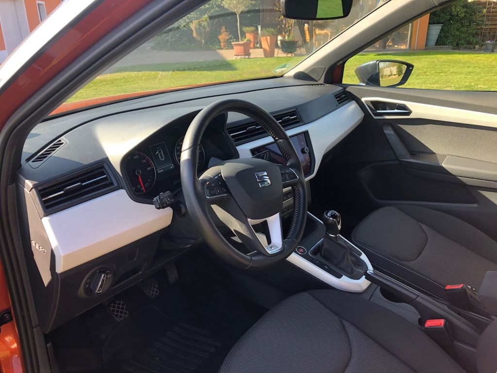 Die Rente ist da,der Zweitwagen kann gehen!Top gepflegter Seat Arona in der schicken Farbkombi Eclipse Orange / Anthrazit. Xcellence Ausstattung mit abgedunkelten Scheiben hinten,Keyless Go und LED Licht. Nichtraucher,Garagenwagen,letzter Service bei 41000km durch Seat,alles im elektronischen Bordbuch eingetragen.TÜV November letzten Jahres ohne Mängel.Allwetter Bereifung.Nur ein Vorbesitzer,seit 10.21 in unserem Besitz.Da der Wagen noch benutzt wird kann sich die Km Angabe verschieben.