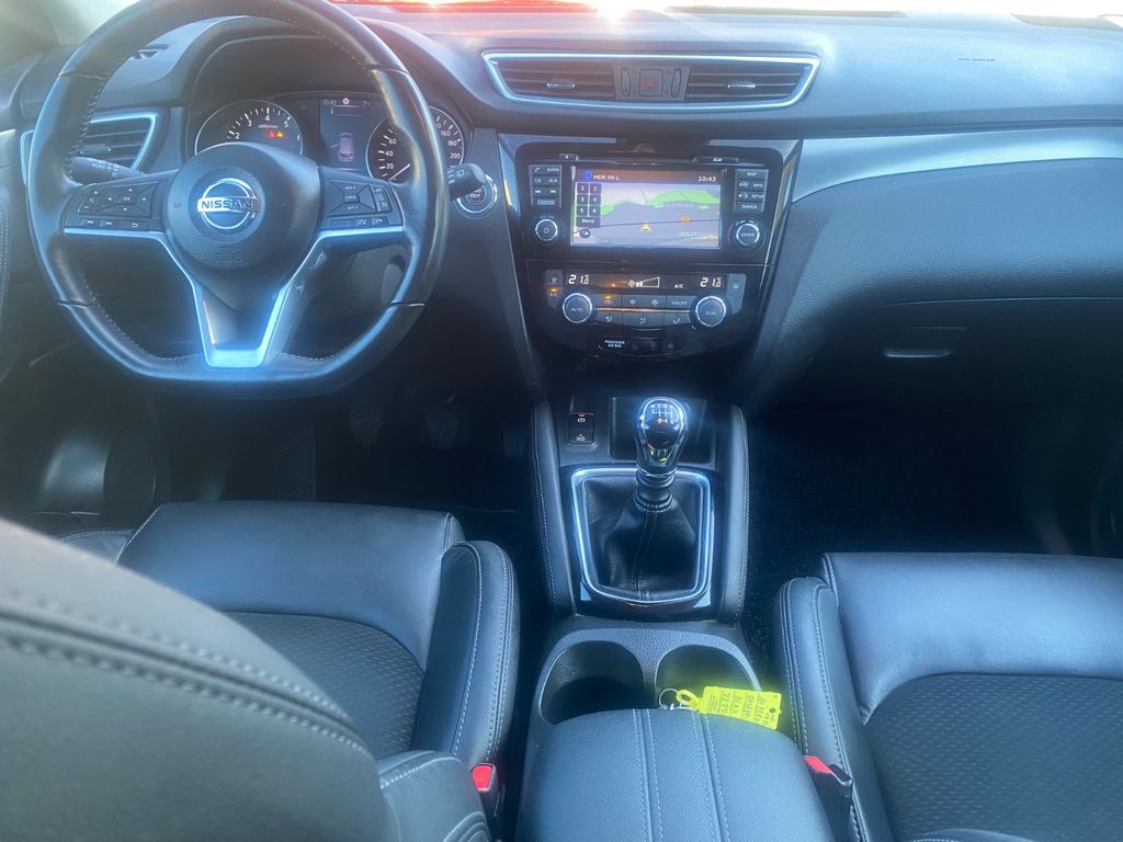 3. Bremsleuchte, Airbag Beifahrerseite abschaltbar, Airbag Fahrer-/Beifahrerseite und Seitenairbag vorn, Ambiente-Beleuchtung, Audio Navigationssystem Nissan Connect mit Touchscreen-Farbdisplay, Audiobedienung am Lenkrad, Audiosystem: Radio mit CD- und MP3-Player, Auto-Hold-Funktion, Automatische Fahrlichtschaltung, AUX-IN-Anschluss (AUX-IN), Außenspiegel elektr. anklappbar, Außenspiegel elektr. verstell- und heizbar, Außenspiegel Wagenfarbe, Außentemperaturanzeige, Blinkleuchte in Außenspiegel integriert, Bordcomputer, Bremsassistent (Nissan Brake-Assist), Coming-Home-Lichtfunktion (Friendly Lightning), Dachreling silber, Elektr. Bremskraftverteilung (EBD), Fahrassistenz-Paket Visia, Fahrassistenz-System: Aktive Fahrkomfortregelung (Fahrwerksdämpfung), Fahrassistenz-System: Aktive Motorbremse, Fahrassistenz-System: Fernlichtassistent, Fahrassistenz-System: Kurvenbremskontrolle (Aktive Spurkontrolle), Fahrer-Informations-System (FIS) mit Farbdisplay, Fensterheber elektrisch vorn + hinten, Fernentriegelung Tankklappe, Freisprechanlage Bluetooth, Frontscheibe Verbundglas, Gepäck-/Laderaum-Unterteilung (Flexi-Board), Gepäckraumabdeckung / Rollo, Getränkehalter in Mittelkonsole, Gurtstraffer, Handschuhfach beleuchtet, Heckscheibe heizbar, Innenraumfilter: Pollenfilter, Isofix-Aufnahmen für Kindersitz, Kamerasystem Around View, Karosserie: 5-türig, Klimaautomatik 2-Zonen, Kopf-Airbag-System, Kopfstützen vorn und hinten verstellbar, Lendenwirbelstütze Sitz vorn links, Lenksäule (Lenkrad) höhen-/längsverstellbar, Leseleuchte vorn, LM-Felgen, Mittelarmlehne hinten, Modellpflege, Motor 1,6 Ltr. - 120 kW KAT, Nebelschlussleuchte, Parkbremse elektrisch, Radstand 2646 mm, Reifen-Reparaturset, Reifendruck-Kontrollsystem, Rücksitz geteilt/klappbar, Schadstoffarm nach Abgasnorm Euro 6, Schalt-/Wählhebelgriff Leder, Schaltpunktanzeige, Scheibenwischer mit Intervallschaltung, Sitz vorn links höhenverstellbar, Sitz vorn rechts höhenverstellbar, Sitzbezug / Polsterung: Teilleder, Sitzheizung vorn, Sonnenblenden mit Spiegel (beleuchtet), Start-Stop-Knopf, Start/Stop-Anlage, Steckdose (12V-Anschluß) in Mittelkonsole, Türgriffe innen verchromt, Wärmeschutzverglasung mit UV-Schutz, Ambiente-Beleuchtung, Regensensor, Sitzheizung vorn