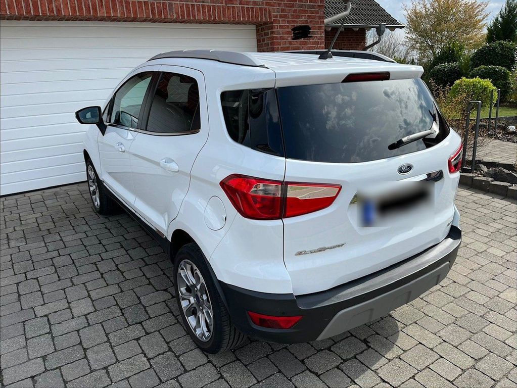 Wir bieten hier unseren Ford EcoSport zum Verkauf an. Das Fahrzeug ist scheckheftgepflegt; sämtliche Inspektionen wurden regelmäßig in der Ford-Vertragswerkstatt durchgeführt, bei der wir das Auto auch erworben haben. Der Wagen wurde ausschließlich privat genutzt und stand stets in der Garage. Es handelt sich um ein Nichtraucherfahrzeug.An der vorderen rechten Stoßstange befinden sich einige kleinere Kratzer, die bereits im Preis berücksichtigt sind. Da uns diese optisch nicht gestört haben, haben wir sie bislang nicht beheben lassen.