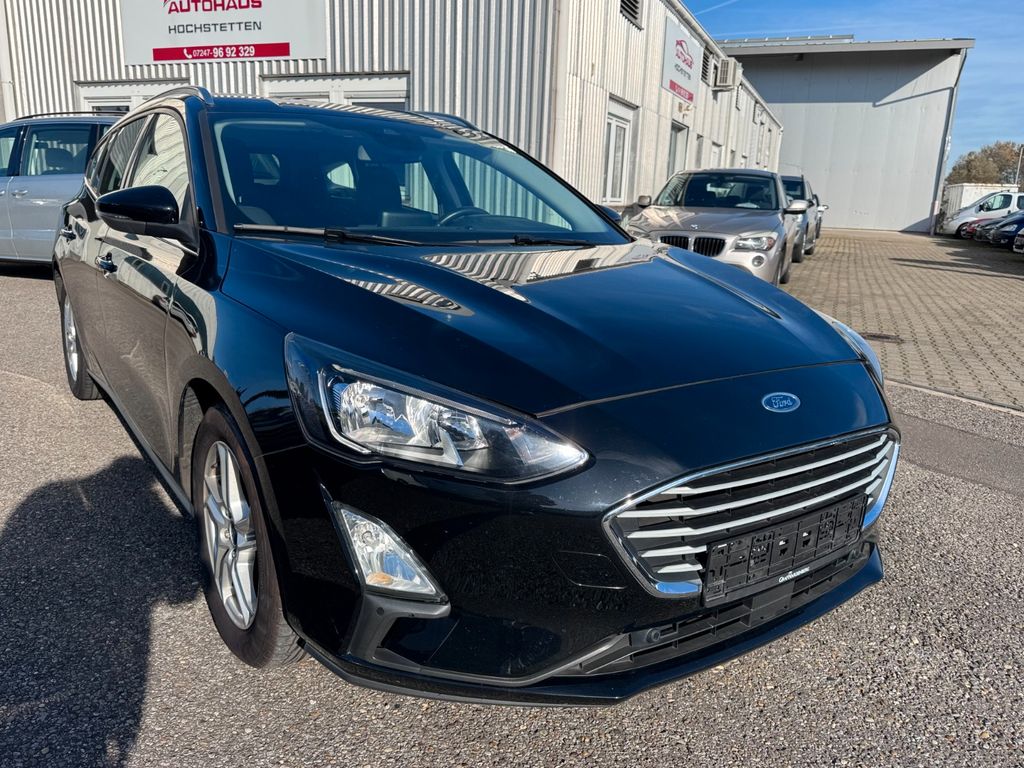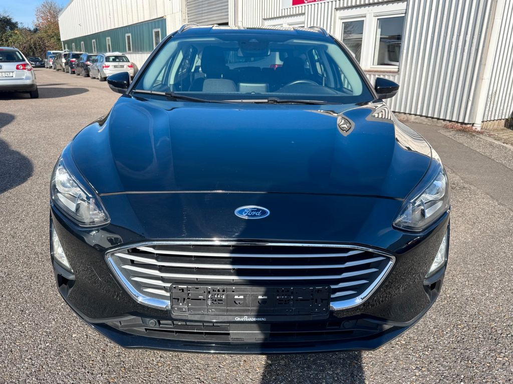 Dieser gepflegte Ford Focus Kombi aus 2019 bietet ein ausgezeichnetes Preis-Leistungs-Verhältnis mit nur einem Vorbesitzer und lückenloser Servicehistorie. Der sparsame Benzinmotor 125 PS überzeugt durch seine Effizienz (Euro 6) und ist mit einem komfortablen Automatikgetriebe ausgestattet. Die schwarze Außenlackierung harmoniert perfekt mit dem schwarzen Stoffinterieur.Die Ausstattung umfasst moderne Technologien wie Apple CarPlay, Android Auto, Navigationssystem, Bluetooth und Freisprecheinrichtung. Für zusätzlichen Komfort sorgen die manuelle Klimaanlage, Sitzheizung, beheizbare Frontscheibe, Multifunktionslenkrad in Leder und Start-Stop-System. Sicherheitsfeatures wie Frontsensoren, Hecksensoren, Spurhalteassistent und Verkehrszeichenerkennung machen die Fahrt angenehmer.