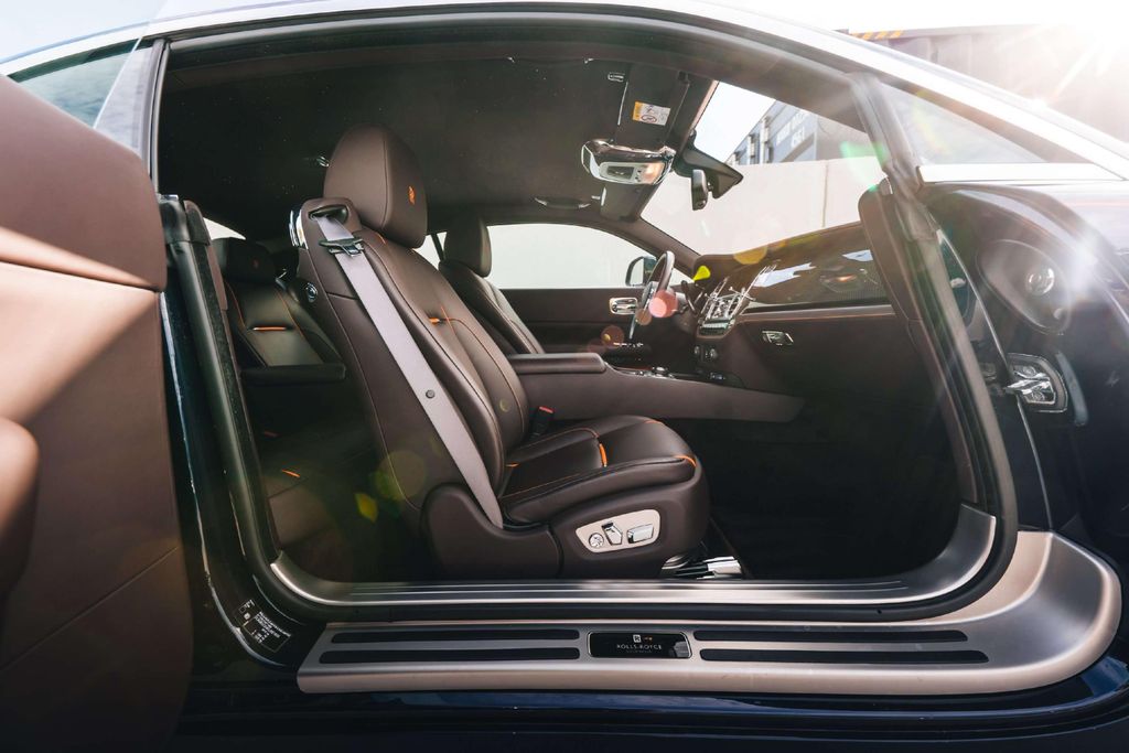Elk detail van deze Wraith ademt verfijning – van de Starlight Headliner en het Bespoke Audiosysteem tot de verlichte “Rolls-Royce Goodwood” instaplijsten en het Mandarin contraststiksel.
