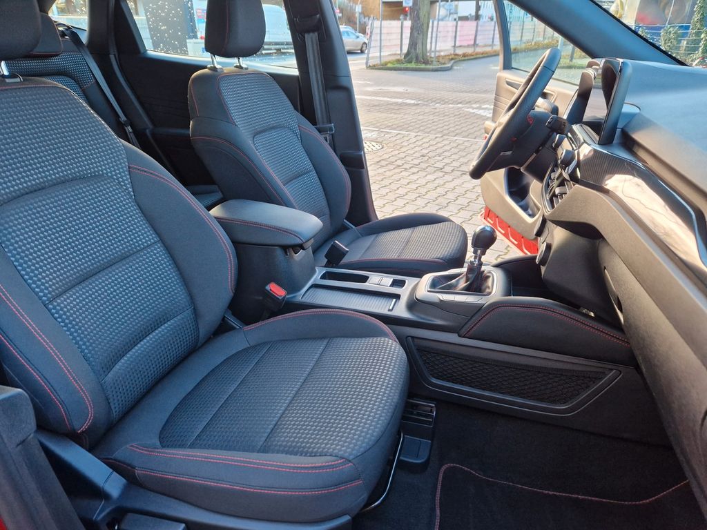 Ambiente-Beleuchtung vorn (LED), Antischlupfregelung (ASR), Audio-Navigationssystem Ford mit AppLink, Außenspiegel elektr. anklappbar, Außenspiegel elektr. verstell- und heizbar, Body-Styling-Paket, Bordcomputer, Dachhimmel Stoff, dunkel, Dachreling schwarz, Dachspoiler Wagenfarbe, Doppelendrohr Auspuffanlage, Eco-Anzeige für verbrauchsoptimiertes Fahren (EcoCoach), Fahrassistenz-System: Notbrems-Assistent, Fahrassistenz-System: Post-Collision-System, Fahrassistenz-System: Pre-Collision-System, Fahrassistenz-System: Spurhalteassistent, Fensterheber elektrisch vorn + hinten mit Komfortschließung, FordPass Connect inkl. eCall, Fußmatten ST-Design, Gepäckraumabdeckung / Rollo, Heckleuchten LED, Induktionsladeschale für mobile Endgeräte, Innenspiegel mit Abblendautomatik, Intelligent Protection System (IPS), Isofix-Aufnahmen für Kindersitz, Karosserie: 5-türig, Klimaautomatik 2-Zonen, Kombiinstrument Digitalanzeige 12,3 Zoll, Kopfstützen vorn 4-fach verstellbar, Lenkrad (Sport/Leder, ST), Lenksäule (Lenkrad) höhen-/längsverstellbar, LM-Felgen, Motor 1,5 Ltr. - 110 kW EcoBoost KAT (1496 ccm), My Key (2. Fahrzeugschlüssel programmierbar), Nebelscheinwerfer LED, Parkbremse elektrisch mit Auto-Hold-Funktion, Parkpilotsystem vorn und hinten, Radstand 2710 mm, Reifendruck-Kontrollsystem, Rücksitzlehne geteilt, Rücksitzlehne klappbar, Schadstoffarm nach Abgasnorm Euro 6d, Schalt-/Wählhebelgriff Aluminium, Scheibenrahmen schwarz, Scheinwerfer mit Ausschaltverzögerung, Scheinwerfer-Assistent mit Tag-/Nachtsensor, SCR-System (AdBlue-Technologie), Sitz vorn links verstellbar (8-fach), Sitz vorn rechts verstellbar (8-fach), Sitzheizung vorn, Sonnenblende links mit Spiegel (beleuchtet), Sonnenblende rechts mit Spiegel (beleuchtet), Sport-Fahrwerk, Sportsitze, Start/Stop-Anlage