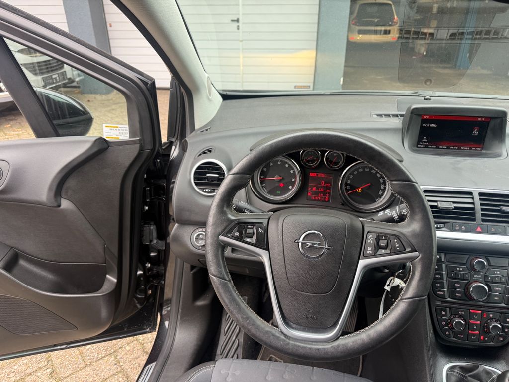 Der Innenraum präsentiert sich mit schwarzer Stoffausstattung, die durch zahlreiche Komfortmerkmale ergänzt wird. Die Automatik-Klimaanlage, beheizbare Vordersitze und das Multifunktionslenkrad in Leder sorgen für angenehmes Reisen. Besonders praktisch: Das Winterpaket und die Ganzjahresreifen machen den Meriva zum zuverlässigen Begleiter bei jedem Wetter.