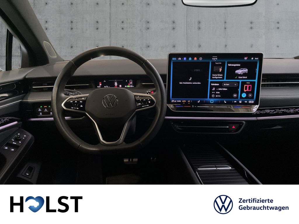 - Weiteres: EA8= 3 J. NW-ASG 27.07.2030 o. 100 TKM, Scheibenwischer mit Regensensor, Servolenkung elektro-mechanisch und geschwindigkeitsabhängig, Radioempfang digital (DAB+), Head-up-Display mit Augmented Reality, Fahrassistenz-System: Ablenkungs- und Müdigkeitserkennung, Außenspiegel schwarz lackiert, Diebstahl-Warnanlage (Innenraumüberwachung, Back-up-Horn, Abschleppschutz), Fahrassistenz-System: Notbremsassistent Front assist mit Fußgänger- und Fahrraderkennung, Insassen-Schutzsystem proaktiv, Gepäckraum-Abtrennung (Netztrennwand), Außenspiegel elektr. verstell-, heiz- und anklappbar mit Spiegelabsenkung rechts, Isofix-Aufnahmen für Kindersitz an Beifahrersitz und Rücksitz (inkl. i-Size-Kindersitze), Multimedia-Schnittstelle 2 x USB (Typ C) vorn und 2 x USB-Ladeanschluß (Typ C) Mittelkonsole hinten (45 W), Dachreling schwarz, Notrufsystem, HV-Batterie 82 kWh brutto / 77 kWh netto, App-Connect Wireless (Apple CarPlay, Android Auto), Audiosystem: Radio, Vorbereitung Onlinedienste We Connect (Plus) oder VW Connect (Plus) und Online-Update-Fähigkeit, Gepäckraumboden höhenverstellbar, Elektromotor 210 kW (EDFB), Frontscheibe heizbar (drahtlos) und infrarot-reflektierend, Ambiente-Beleuchtung (30 Farben), Kofferraumdeckel / Heckklappe elektr. betätigt - Easy Open & Close (öffnen + schliessen, sensorgesteuert), Anhängerkupplung mit elektr. Entriegelung, schwenkbar, Klimaanlage Air Care Climatronic 3-Zonen inkl. Fondbedienung und Aktiv-Kombi-Filter, LM-Felgen vorn/hinten: 8,5x20 / 9,5x20 (Montreal, schwarz, glanzgedreht), Reifen: mit sportlicher Fahrdynamik, Leuchtweitenregelung automatisch und Dynamisches Kurvenlicht, Sitze vorn ErgoActive (elektr. verstellbar, Memory, Oberschenkelauflage verschiebbar, Komforteinstieg), Matrix-LED-Scheinwerfer (IQ.Light) inkl. autom. Fahrlichtschaltung, Schlechtwetter-Licht und Begrüßungsfunktion, Lendenwirbelstützen vorn, Fahrassistenz-System: Parklenkassistent (Park Assist Plus) inkl. Einparkhilfe vorn und hinten, Gepäcksicherungsnetz und Ablagenetze seitlich, Mobiltelefon Schnittstelle Comfort mit kabelloser Ladefunktion, Navigationsfunktion Discover Pro Max (Touchscreen-Farbdisplay), Lenkrad heizbar mit Multifunktions-Touchbedienung, Sitzbezug / Polsterung: Mikrovlies ArtVelours Eco / Artex, Sitze vorn mit Massageprogrammen, Anti-Blockier-System (ABS), Wegfahrsperre (elektronisch), Zentralverriegelung, Reifenkontroll-Anzeige, Airbag Fahrer-/Beifahrerseite, Beifahrerairbag abschaltbar, Stoßfänger Wagenfarbe, Rücksitzlehne geteilt mit Mittelarmlehne und Durchladeeinrichtung, Schließ-/Startsystem Keyless Access mit Safesicherung, Metallic-Lackierung, Umgebungsansicht Area View inkl. Rückfahrkamera Rear View, Heckleuchten LED, Blinkleuchten dynamisch, Abbiege- und Allwetterlicht / Schlechtwetter-Licht, Abbiegebremsfunktion und Ausweichunterstützung, Akustischer Fußgängerschutz, Assistenz-Paket, Automatische Distanzregelung (ACC), Bordwerkzeug, Dach schwarz lackiert