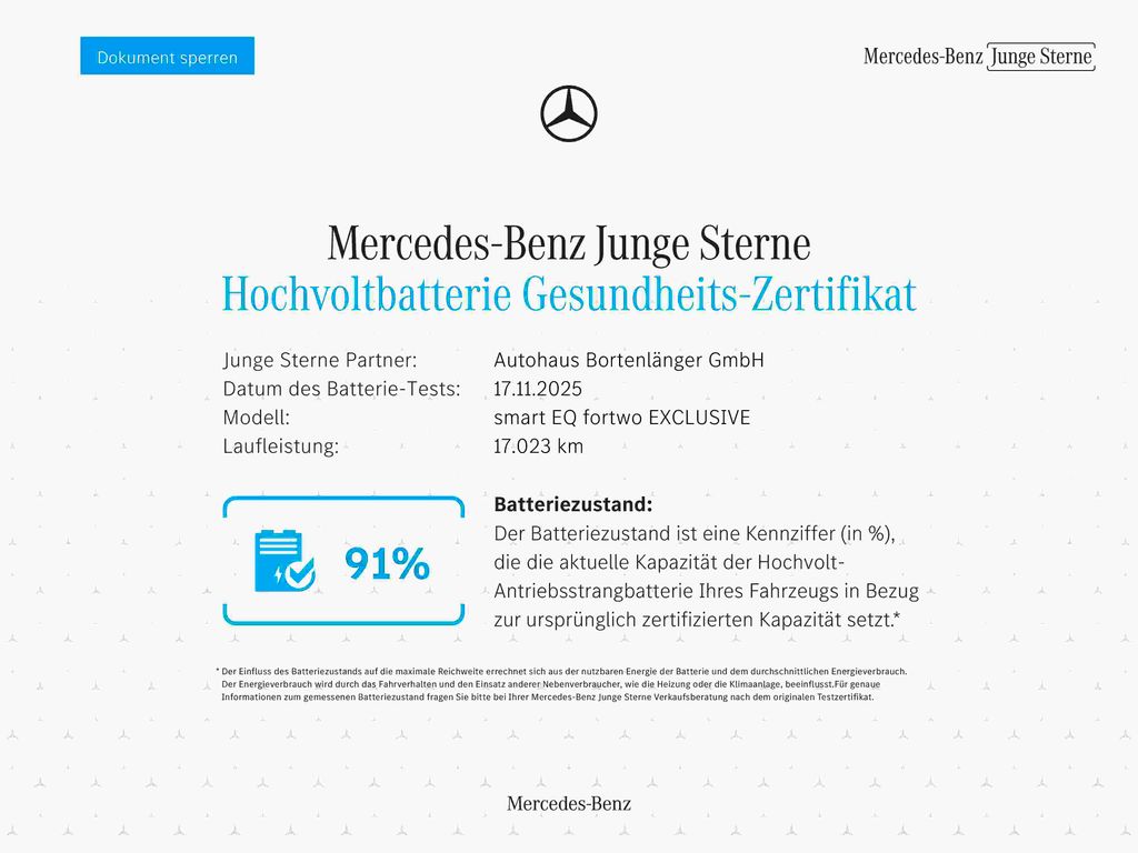 - Batteriezertifikat (SOH) 91 %