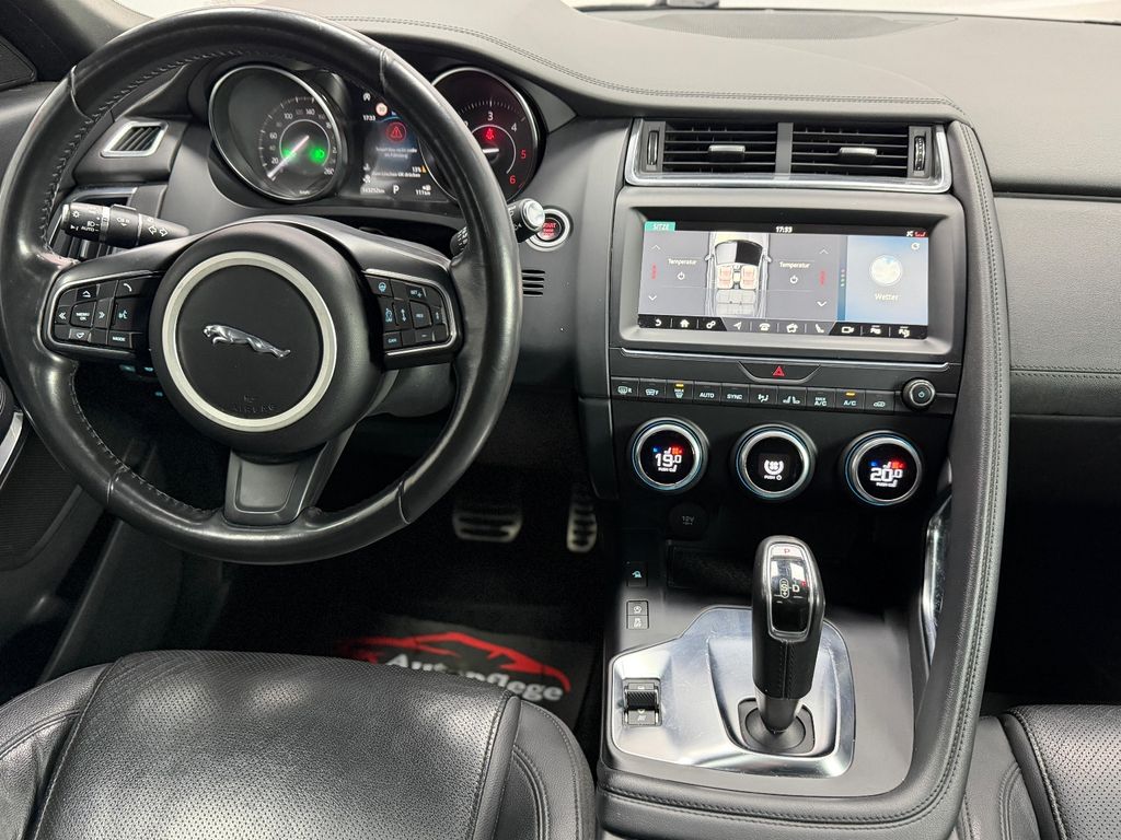 Airbag Fahrer-/Beifahrerseite, Ambiente Interieurbeleuchtung, Antriebsart: Allradantrieb, Audiosystem Jaguar 125 Watt Klangsystem (CD/DVD), Außenspiegel elektr. verstell-, heiz- und anklappbar, mit Abblendautomatik und Umfeldleuchte, Bluetooth-Schnittstelle, Einschaltautomatik für Fahrlicht / Lichtsensor, Einstiegsblenden (Edelstahl) mit Schriftzug, Elektr. Bremskraftverteilung (EBD), Elektron. Traktionskontrolle, Fahrassistenz-System: Antriebsmomentkontrolle (Torque Vectoring), Fahrassistenz-System: Aufmerksamkeits-Assistent, Fahrassistenz-System: Autonomer Notbrems-Assistent (AEB), Fahrassistenz-System: Berganfahrhilfe (Hill-Holder), Fahrassistenz-System: Spurhalteassistent, Fußgänger-Schutzsystem: Airbag für Fußgänger, Gepäckraumabdeckung / Rollo, Gepäckraumbeleuchtung, Getriebe Automatik - (9-Stufen), Getränkehalter vorn mit Abdeckung, Heckleuchten LED, Heckscheibe heizbar, Heckspoiler, InControl Touch Pro Infotainment-System (10 Zoll Farbdisplay), InControl-Connect-Paket Pro, Innenspiegel mit Abblendautomatik, Isofix-Aufnahmen für Kindersitz im Fond, JaguarVoice Sprachsteuerung, Karosserie: 5-türig, Kindersicherung elektrisch, Klimaautomatik 2-Zonen, Kopf-Airbag-System (Windowbag), Kühlergrill schwarz mit Chromeinfassung, Lenkrad mit Multifunktion, Leseleuchten im Fond, Lichtassistent (Coming Home, Leaving Home), LM-Felgen, Lufteinlassblende Chrom, Make-up-Spiegel im Fond beleuchtet, Mittelarmlehne vorn mit Ablagefach, Motor 2,0 Ltr. - 110 kW Diesel KAT, Navigationssystem Pro, Nebelschlussleuchte integriert, Park-Paket (Einparkhilfe), Parkbremse elektronisch (EPB), Personalisierungssystem (Smart Settings), Radstand 2681 mm, Reifen-Reparaturset, Reifendruck-Kontrollsystem, Rückfahrkamera, Rücksitzlehne geteilt/klappbar, Schadstoffarm nach Abgasnorm Euro 6, Scheibenrahmen schwarz, Scheinwerfer LED mit LED-Signatur, Seitenairbag vorn, Sitzbezug / Polsterung: Leder, Smartphone-Paket, Stop-Start-Anlage, Taschenhaken im Gepäckraum, Türentriegelung automatisch (bei Unfall), Uni-Lackierung, Verzurrösen Koffer-/Laderaum, Warnanlage für Sicherheitsgurte
