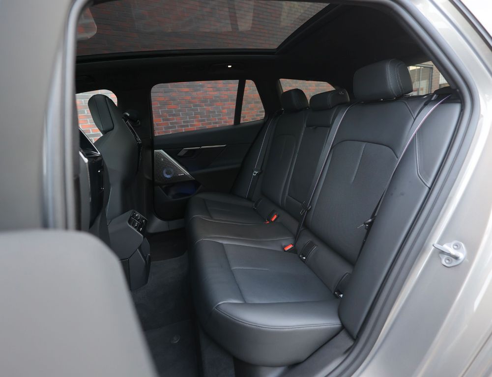 Inside, the atmosphere is one of pure luxury. Premium Merino leather in black sets the tone, complemented by Crafted Clarity glass details and aluminium trim. The M multifunctional seats provide exceptional comfort and come with heating, ensuring year-round enjoyment. The panoramic glass roof enhances the spacious feeling, while the Bowers & Wilkins sound system transforms every drive into a musical experience.