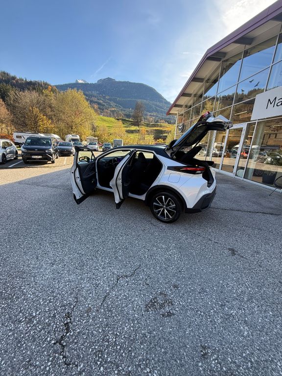 2-Farben-Lackierung, 3. Bremsleuchte, Airbag Beifahrerseite abschaltbar, Airbag Fahrer-/Beifahrerseite, Aktive Kopfstützen vorn, Akustischer Fußgängerschutz (Außensound, AVAS), Anzeigeinstrumente digital, Audiobedienung am Lenkrad, Autom. Begleitfunktion der Beleuchtung (Follow me home, FMH), Außenspiegel elektr. anklappbar, Außenspiegel elektr. verstell- und heizbar, Außenspiegel mit Totwinkel-Assistent, Blinkleuchte in Außenspiegel integriert, Bodenleuchte im Außenspiegel, Einparkhilfe vorn und hinten, Einschaltautomatik für Fahrlicht, Elektr. Bremskraftverteilung, Fahrassistenz-System: Ausstiegswarnung (Safe Exit Assist, SEA), Fahrassistenz-System: Berganfahrkontrolle (HAC), Fahrassistenz-System: Querverkehrs-Assistent Heck (Rear Cross Traffic Alert, RCTA), Fahrassistenz-System: Sicherheitssystem Toyota Connect mit automatischem Notruf (eCall), Fensterheber elektrisch vorn + hinten, Frontscheibe mit Wischerablagenheizung, Gurtstraffer vorn, Heckleuchten LED, Heckspoiler, Hybrid 145 kW (Motor 2,0 Ltr. - 112 kW 16V), Induktionsladeschale für Smartphone, Innenbeleuchtung LED, Innenraumfilter: Staub- und Pollenfilter mit Aktivkohlefilter, Innenspiegel mit Abblendautomatik, Isofix-Kindersitz-System, Karosserie: 5-türig, Kindersicherung, Klimaautomatik 2-Zonen, Knieairbag Fahrerseite, Kopf-Airbag-System, Kopfstützen hinten, Lenkrad heizbar, Lenksäule (Lenkrad) verstellbar, Leseleuchten vorn und hinten, Leuchtweitenregelung, Mittelkonsole mit Ablagefach, Nebelscheinwerfer LED, Parkbremse elektrisch (EPB), Radstand Standard, Reifen-Reparaturkit, Reifendruck-Kontrollsystem, Rückfahrkamera, Rücksitzbank klappbar 1/3-2/3, Schadstoffarm nach Abgasnorm Euro 6e, Seitenairbag vorn, Service-System: MyT-Connected Services, Sitz vorn links höhenverstellbar, Sitz vorn rechts höhenverstellbar, Sitzheizung vorn, Sonnenblenden mit Spiegel (beleuchtet), Steckdose (12V-Anschluß) in Mittelkonsole, Toyota Safety Sense, Toyota Smart Connect Plus, Türgriffe außen Wagenfarbe, USB-Anschlüsse (2) für 2.Sitzreihe, Verglasung hinten abgedunkelt, Warnanlage für Sicherheitsgurte hinten, Warnanlage für Sicherheitsgurte vorn