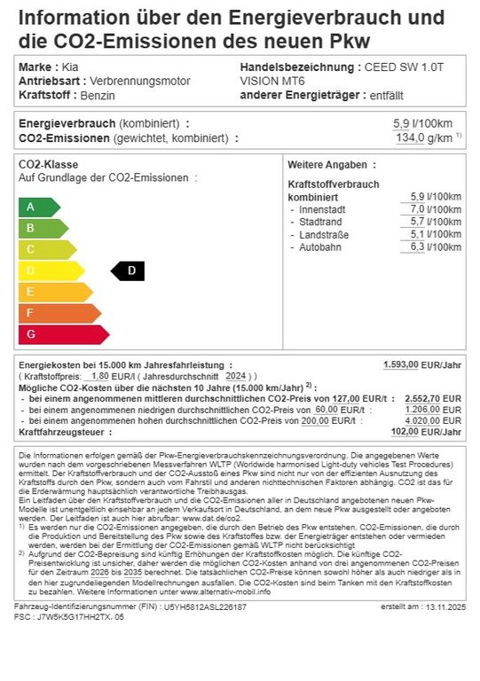 - Spotřeba (komb.) l/100 km