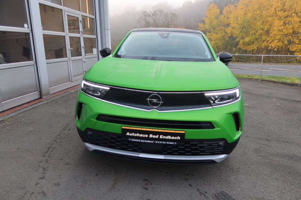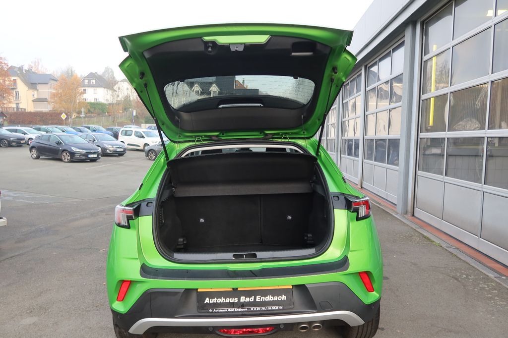 Außenspiegel elektr. verstell- und heizbar, elektr. anklappbar, Bluetooth Audio-Streaming, DAB-Tuner (Radioempfang digital), Dachhimmel Grau, Dachspoiler, Elektron. Stabilitäts-Programm Plus (ESP), Fahrassistenz-System: Fernlichtassistent, Fahrassistenz-System: Müdigkeitserkennungs-Sensor, Fahrassistenz-System: Verkehrszeichenerkennung, Fahrzeugschlüssel (2) beide klappbar, Feststellbremse elektrisch, Freisprecheinrichtung Bluetooth, Gepäck-/Laderaumboden doppelt, Getriebe Automatik - mit Start-/Stop (8-Stufen), Heckleuchten LED, Karosserie: 5-türig, Klimaautomatik, Kopf-Airbag-System, Kühlergrill, Opel Vizor, Rahmen in Chrom, Lenkrad heizbar, LM-Felgen, Motor 1,2 Ltr. - 96 kW, MP3-Schnittstelle für Mobiltelefon/Handy, Nebelscheinwerfer LED, Otto-Partikelfilter (OPF), Radstand 2557 mm, Reifen-Reparaturkit, Schadstoffarm nach Abgasnorm Euro 6d, Seitenairbag vorn, Sicht-Paket, Start/Stop-Anlage, Wärmeschutzverglasung