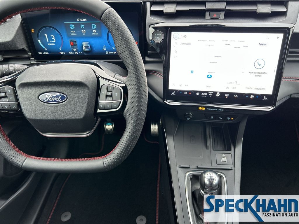- Audio-Navigationssystem Ford Cloud-Navigationssystem: USB-Anschluss, Vorrüstung Mobiltelefon/Handy mit Bluetooth-/USB-Schnittstelle, Fahrassistenz-System: Sicherheitssystem SYNC mit automatischem Notruf, Sprachsteuerung und Bluetooth-Schnittstelle, FordPass Connect inkl. eCall, Smartphone-Integration (Apple CarPlay und Android Auto), USB-Anschlüsse (2) vorn, Kombiinstrument Digitalanzeige 12,8 Zoll