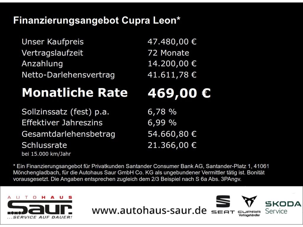 - Intelligent-Drive-Paket II: Fahrassistenz-System: Pre-Crash-System, Fahrassistenz-Paket XL, Fahrassistenz-System: Intelligent Park Assist (IPA), Fahrassistenz-System: Totwinkel-Assistent mit Auspark-Assistent, Spurwechselassistent und Ausstiegswarnung, Fahrassistenz-System: Spurhalteassistent Plus inkl. Travel Assist, Emergency Assist und Stauassistent, Audio-Navigationssystem mit Touchscreen Farbbildschirm 12,9'', Mobile Online Dienste Cupra Connect plus