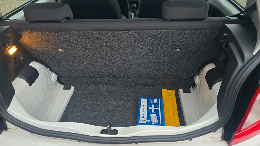 3. Bremsleuchte, Airbag Beifahrerseite abschaltbar, Airbag Fahrer-/Beifahrerseite, Außenspiegel mech. von innen verstellbar, beide, Bremsassistent, Dachantenne, elektronische Schlupfregulierung (ESR), Fahrassistenz-System: Berganfahr-Assistent (Hill-Holder), Gepäckraumabdeckung / Rollo, Gurtstraffer, Handschuhfach, Heckscheibe heizbar, Heckscheibenwischer, Isofix-Aufnahmen für Kindersitz, Karosserie: 5-türig, Lautsprecher vorn, Lenkrad (Sport), Lenksäule (Lenkrad) höhenverstellbar, Modellpflege, Motor 1,0 Ltr. - 44 kW, Radiovorbereitung, Reifen-Reparaturset, Reifenkontroll-Anzeige, Rücksitzbank / Lehne kpl. klappbar, Schadstoffarm nach Abgasnorm Euro 6, Seitenairbag, Sitzbezug / Polsterung: Stoff, Sonnenblende links mit Spiegel (beleuchtet), Sport-Fahrwerk, Start/Stop-Anlage, Steckdose (12V-Anschluß) in Mittelkonsole, Stoßfänger lackiert, Warnanlage für Sicherheitsgurt-System