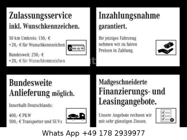 Die Angaben in Anzeigen, Internet und Bildern sind unverbindliche Beschreibungen und dienen nicht als zugesicherte Eigenschaften. Der Verkäufer übernimmt keine Haftung für Tipp und Datenübermittlungsfehler, Beschädigungen oder Unfälle die dem Verkäufer selbst verschwiegen wurden. Aufgeführte Ausstattungen sind gesondert zu prüfen. Irrtum und Zwischenverkauf ist vorbehalten. Wir freuen uns auf Ihren Besuch