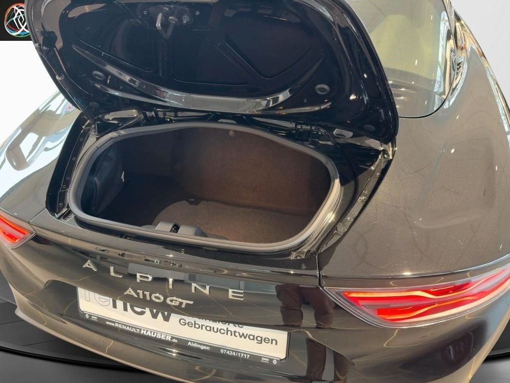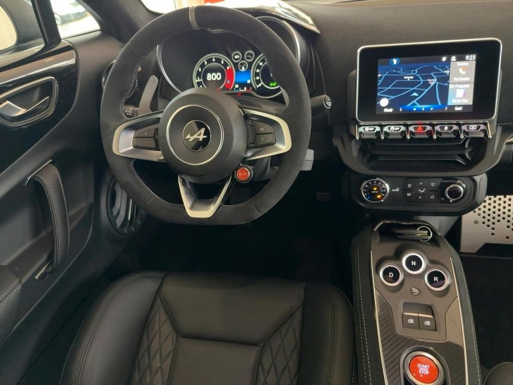 Sonderausstattung:Ablage-Paket, Alpine Telemetrics, Bremssättel schwarz lackiert, Dachhimmel Mikrofaser, schwarz, Embleme Alpine, Kotflügel vorn, Fußstütze Beifahrer Aluminium, LM-Felgen vorn/hinten: 7x18 / 8x18 (Grand Prix, Diamant-Schwarz, glanzgedreht), Pedale Aluminium, Sicht-Paket, Sonderlackierung Noir Profond Metallic, Sound-System Focal High Performance Sound Premium