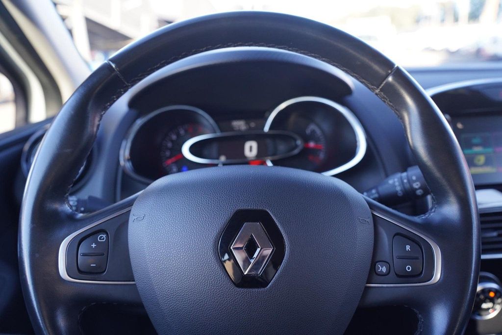 The audio system and full-map navigation system are controlled via buttons on the steering wheel. The audio system also includes DAB radio for consistently clear reception. This Renault Clio is equipped with rear sensors that alert you to approaching traffic if the distance between you and the vehicle behind you is too short. With the automatic climate control, you can select the desired temperature, and the system takes care o