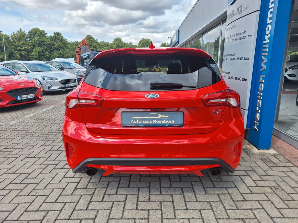 Airbag Beifahrerseite abschaltbar, Antischlupfregelung (ASR), Audio-Navigationssystem Ford mit AppLink, Außenspiegel elektr. anklappbar, Außenspiegel elektr. verstell- und heizbar, Blinkleuchte in Außenspiegel integriert, Body-Styling-Paket, Bord-/Verbrauchscomputer, Dachhimmel Stoff, dunkel, Dachspoiler (große Ausführung) Wagenfarbe, Dimmer Instrumentenbeleuchtung, Doppelendrohr Auspuffanlage, Elektr. Bremskraftverteilung (EBD), Elektron. Differentialsperre (EDS), Fahrassistenz-System: Berganfahr-Assistent (Hill-Holder), Fahrassistenz-System: Notbrems-Assistent, Fahrassistenz-System: Post-Collision-System, Fahrassistenz-System: Pre-Collision-System, Fahrassistenz-System: Spurhalteassistent, Farbdisplay für Bordcomputer, Fensterheber elektrisch vorn + hinten mit Komfortschließung, FordPass Connect inkl. eCall, Fußmatten Velours - vorn, Gepäckraumabdeckung / Rollo, Innenraumfilter: Staub- und Pollenfilter, Innenspiegel mit Abblendautomatik, Intelligent Protection System (IPS), Intelligenter Geschwindigkeits-Begrenzer, Interaktives Fahrwerkssystem (IVDC), Isofix-Aufnahmen für Kindersitz, Karosserie: 5-türig, Klimaautomatik 2-Zonen, Kopfstützen hinten mechan. verstellbar (3 Stück), Kopfstützen vorn 4-fach verstellbar, Lackierung Race-Rot, Lenkrad (Sport/Leder, ST), Lenksäule (Lenkrad) höhen-/längsverstellbar, LM-Felgen, Mittelkonsole Premium, Motor 2,3 Ltr. - 206 kW EcoBoost KAT, My Key (2. Fahrzeugschlüssel programmierbar), Otto-Partikelfilter (OPF), Parkbremse elektrisch mit Auto-Hold-Funktion, Parkpilotsystem vorn und hinten, Pedale Aluminium, Reifen-Reparaturkit, Reifendruck-Kontrollsystem, Rücksitzlehne geteilt/klappbar (60:40), Schadstoffarm nach Abgasnorm Euro 6d-TEMP, Schalt-/Wählhebelgriff Aluminium, Schaltpunktanzeige, Scheinwerfer mit abgedunkelten Hintergrund, Scheinwerfer mit Ausschaltverzögerung, Scheinwerfer-Assistent mit Tag-/Nachtsensor, Sonnenblende links mit Spiegel, Sonnenblende rechts mit Spiegel, Start/Stop-Anlage, Verglasung getönt, Warnanlage für Sicherheitsgurte hinten, Warnanlage für Sicherheitsgurte vorn