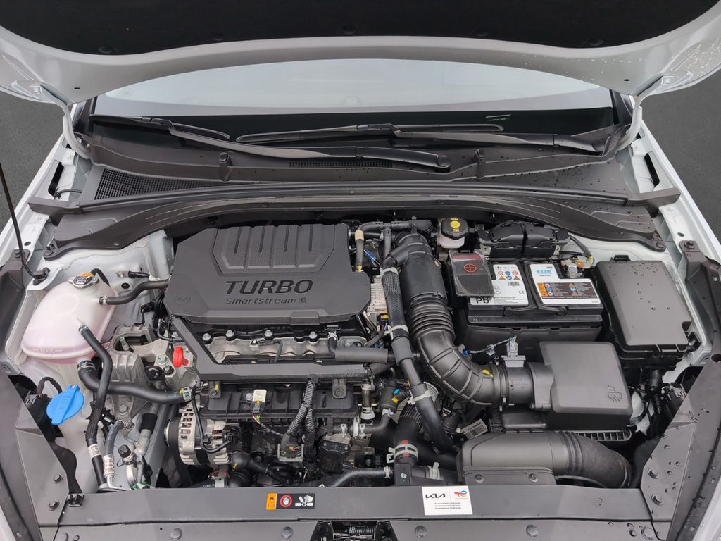 - Weiteres: BORDCOMPUTER, Reifendruck-Kontrollsystem, Sitzbezug / Polsterung: Stoff, Geschwindigkeits-Regelanlage (Tempomat), Mittelarmlehne vorn, Rückfahrkamera, Reifen-Reparaturset, Einparkhilfe hinten, Lenkrad mit Multifunktion, Dachreling, Heckleuchten LED, Dachspoiler, Alarmanlage, Lenkrad heizbar, Multifunktion für Lenkrad, Parkbremse elektrisch, Fensterheber elektr. mit Einklemmschutz vorn, Sitzheizung vorn, LM-Felgen, Start/Stop-Anlage (ISG), Schadstoffarm nach Abgasnorm Euro 6d-TEMP, Sonderlackierung Carrara-Weiß, Audio-Navigationssystem KIA (10,25), Dachkonsole mit Leseleuchten, Schadstoffarm nach Abgasnorm Euro 6e, Rücksitzbank geteilt/klappbar (60:40), Motor 1,5 Ltr. - 103 KW T-GDI KAT, Fahrassistenz-System: Frontkollisionswarnung mit Fußgänger- und Fahrraderkennung und Abbiegefunktion, Fahrassistenz-System: Insassenalarm (Rear Occopant Alert, ROA), Lenkrad (Leder), Mittelarmlehne hinten mit Getränkehalter, Scheibenwischer mit Regensensor, Sensor Scheibenbeschlagerkennung, Innenspiegel mit Abblendautomatik, Klimaautomatik 2-Zonen, Airbag Fahrer-/Beifahrerseite, Anti-Blockier-System (ABS), Nebelscheinwerfer, Stoßfänger Wagenfarbe, Tagfahrlicht LED, Außenspiegel elektr. verstellbar, beide, Wegfahrsperre, Kopf-Airbag-System, Seitenairbag, USB-Anschluss + AUX-IN-Anschluss, Elektron. Stabilitäts-Programm (ESP / ESC), Adaptive Geschwindigkeits-Regelanlage mit Stop&Go-Funktion, USB-Schnellladeanschluß Mittelkonsole, Tagfahrlicht LED hinten, 12V-Steckdose, Abbiegelicht, aktiver Spurhalteassistent (LKAS, Lane Keep Assist System), Aktives Bremslicht (ESS), Antriebs-Schlupfregelung (TCS), Außenspiegel Wagenfarbe, Berg-Anfahr-Assistent, Bremsassistent, Brillenfach in Dachhimmel, Chromeinfassung Seitenfenster, Dachantenne im Haifischflossen-Design, Dachhimmel grau, Doppelkupplungsgetriebe DCT - 7-Gang, Drive-Mode Auswahl, Einschaltautomatik für Fahrlicht, Elektr. Bremskraftverteilung (EBD), Fensterheber elektrisch vorn und hinten, Fernlichtassistent, Freisprechanlage Bluetooth, Gepäckraum-Trennnetz, Getränkehalter, Gurtwarner, Gurtwarner hinten, Heckscheibe heizbar, Heckscheibenwischer, Heckspoiler mit integrierter Bremsleuchte, Isofix-Aufnahmen für Kindersitz, Komfort-Plus-Paket, Kopfstützen hinten, Laderaumboden variabel, Mittelarmlehne hinten, Müdigkeitserkennungs-Sensor (Driver Attention Warning, DAW), Navi-Paket, Radioempfang digital (DAB+), Servolenkung elektronisch, Sitzhöhenverstellung, Sitzhöhenverstellung Fahrersitz, Smartphone Schnittstelle, Spurfolgeassistent (Lane Following Assist, LFA), Touchscreen-Farbdisplay (7,0 Zoll), Türgriffe innen Chrom-Optik, Türgriffe lackiert, Verkehrszeichenerkennung, Wärmeschutzverglasung, ZV mit Fernbedienung